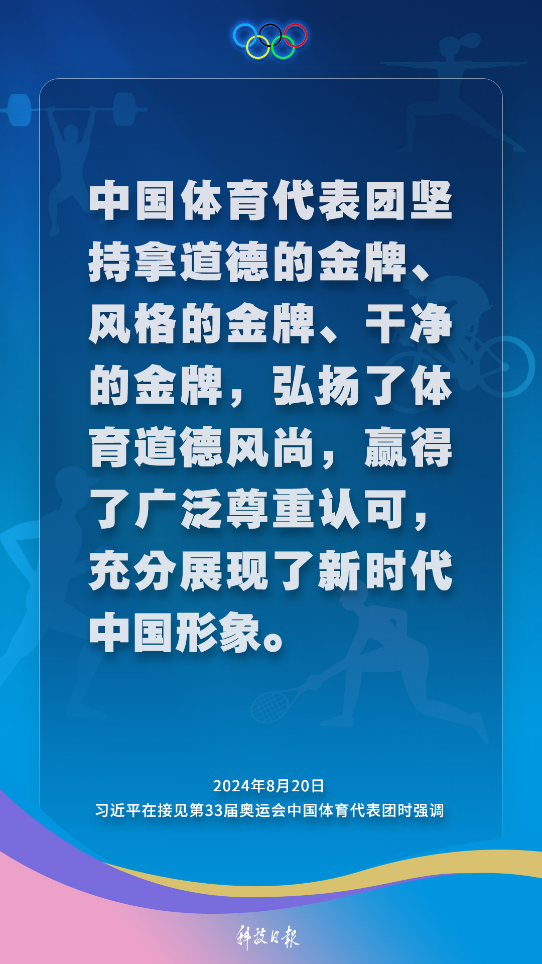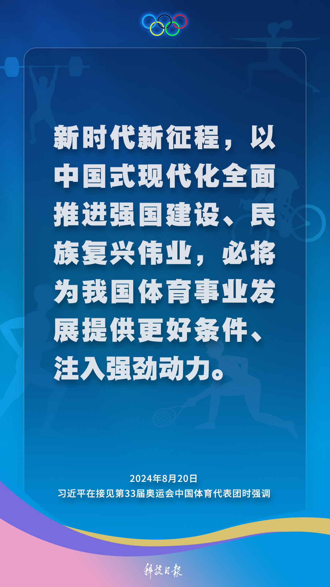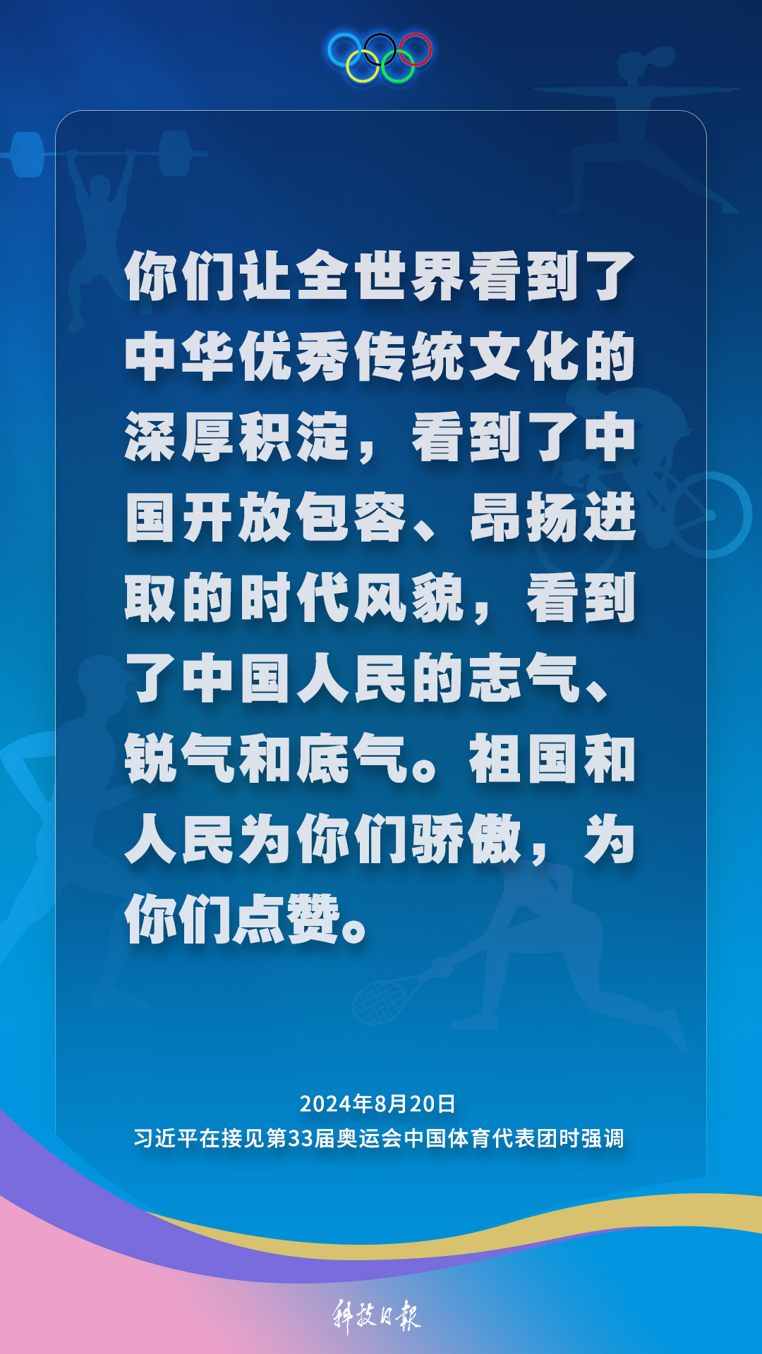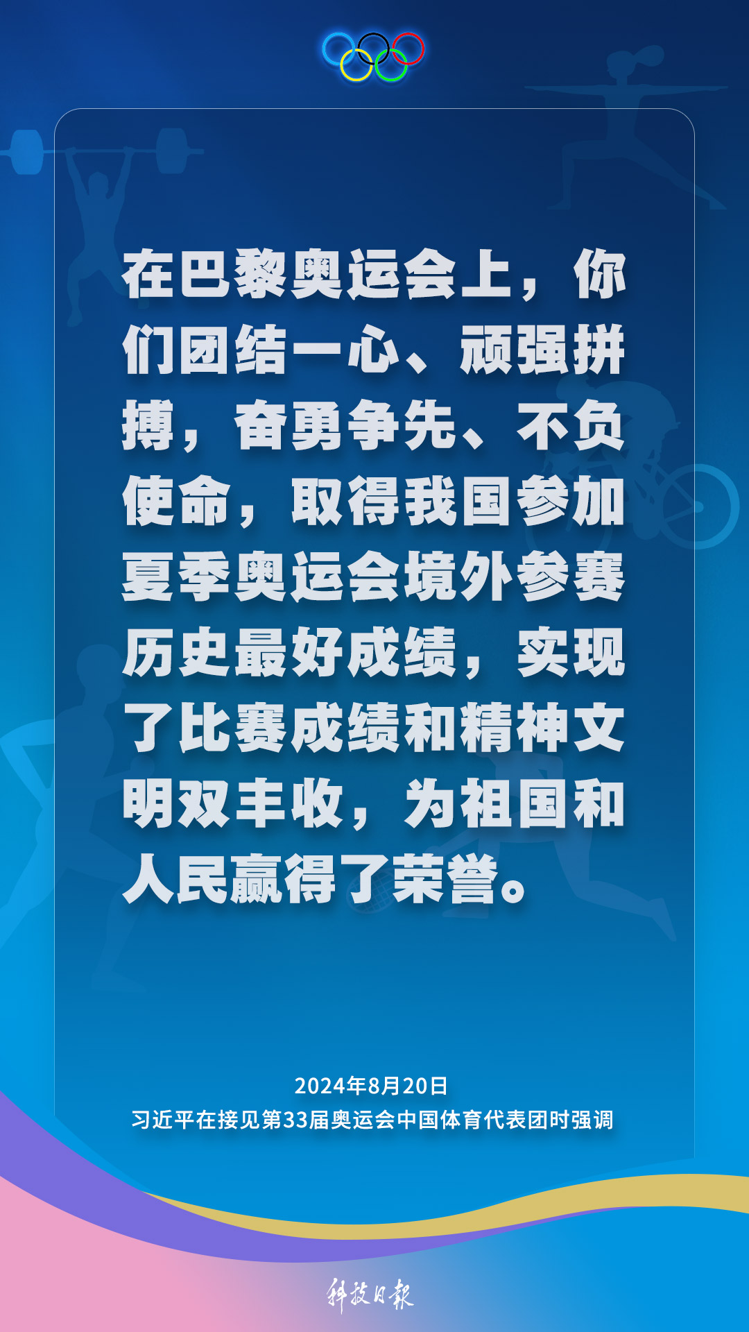 中共中央总书记、国家主席、中央军委主席习近平20日下午在人民大会堂接见第33届夏季奥林匹克运动会中国体育代表团全体成员。他强调——
