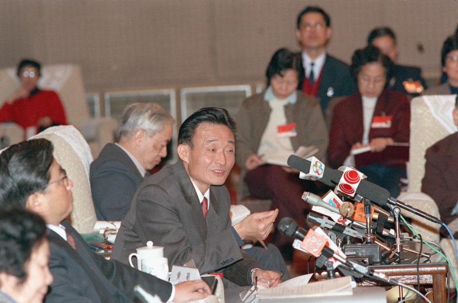 1994年3月,时任上海市委书记的吴邦国同志在全国两会上海代表团全团会议上。