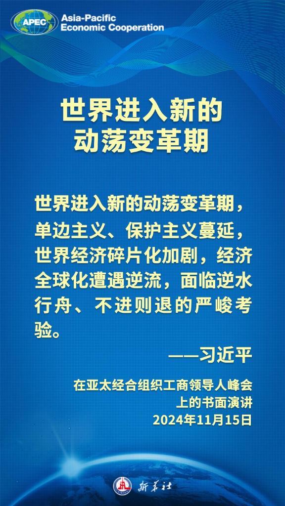 当地时间11月15日上午,国家主席习近平向在利马举行的亚太经合组织工商领导人峰会发表题为《把握时代大势 共促世界繁荣》的书面演讲,这样阐述亚太合作——