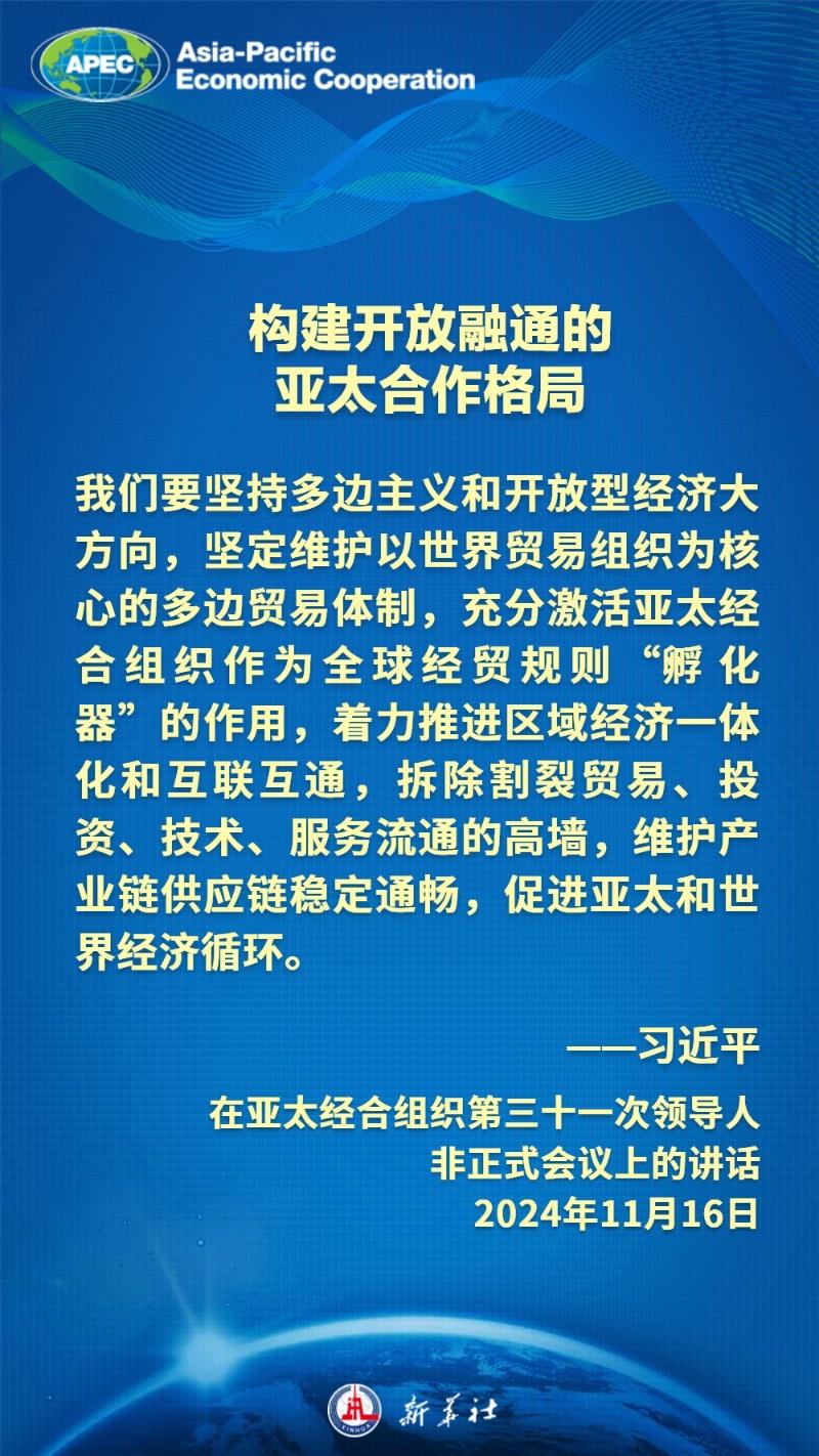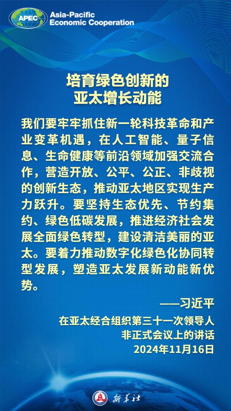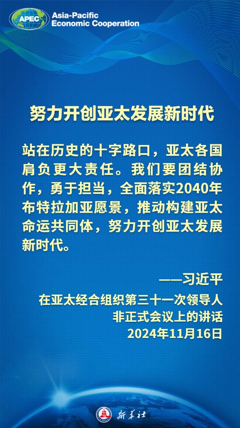 当地时间11月16日上午,国家主席习近平在亚太经合组织第三十一次领导人非正式会议上发表题为《共担时代责任 共促亚太发展》的重要讲话。习近平主席说——