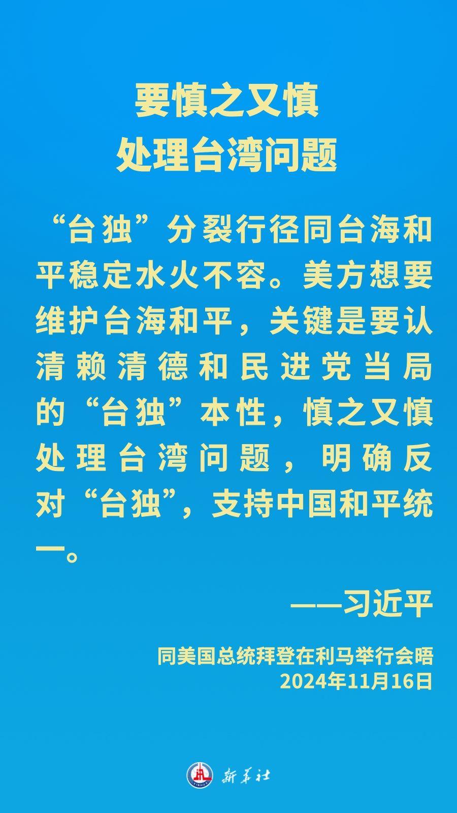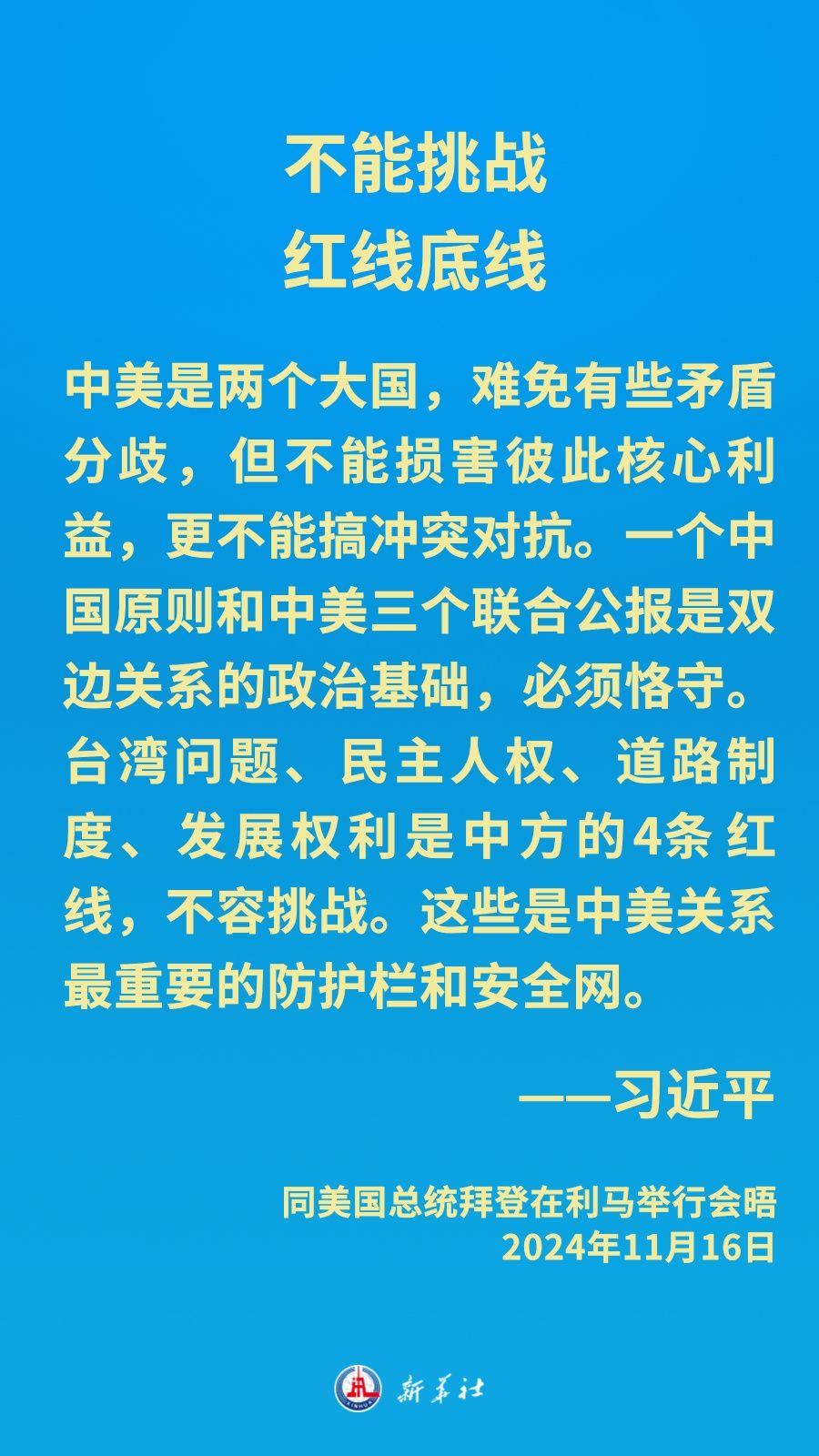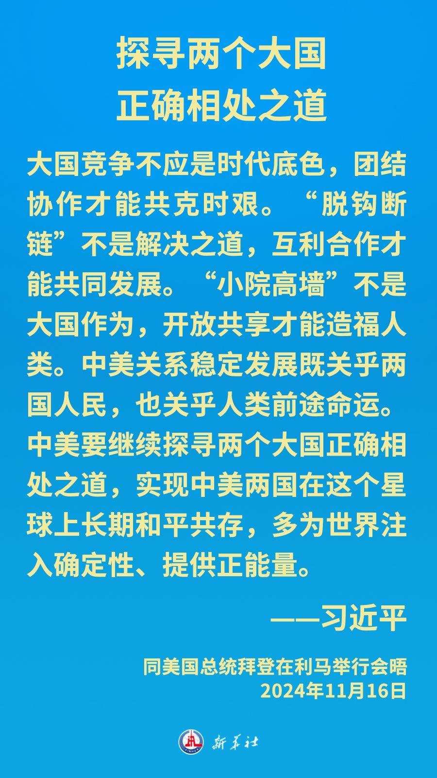 当地时间11月16日下午,习近平主席在秘鲁利马出席亚太经合组织领导人非正式会议期间应约同美国总统拜登举行会晤。就中美关系发展,习近平主席阐明中方立场——