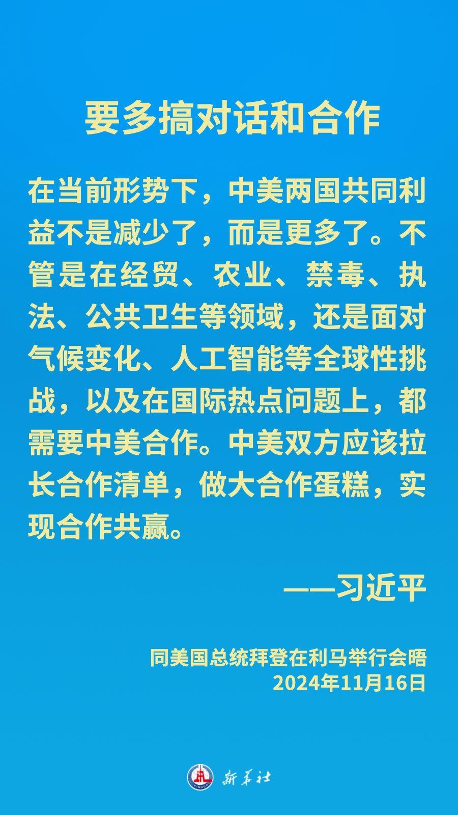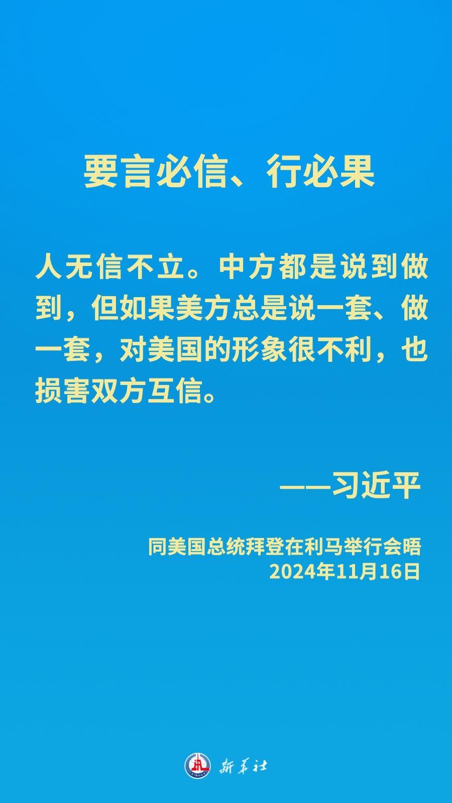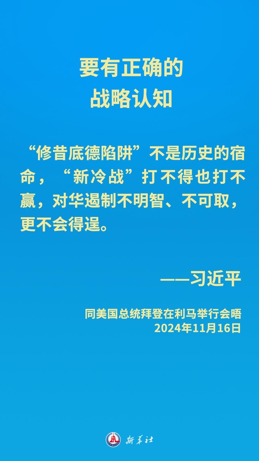 当地时间11月16日下午,习近平主席在秘鲁利马出席亚太经合组织领导人非正式会议期间应约同美国总统拜登举行会晤。就中美关系发展,习近平主席阐明中方立场——