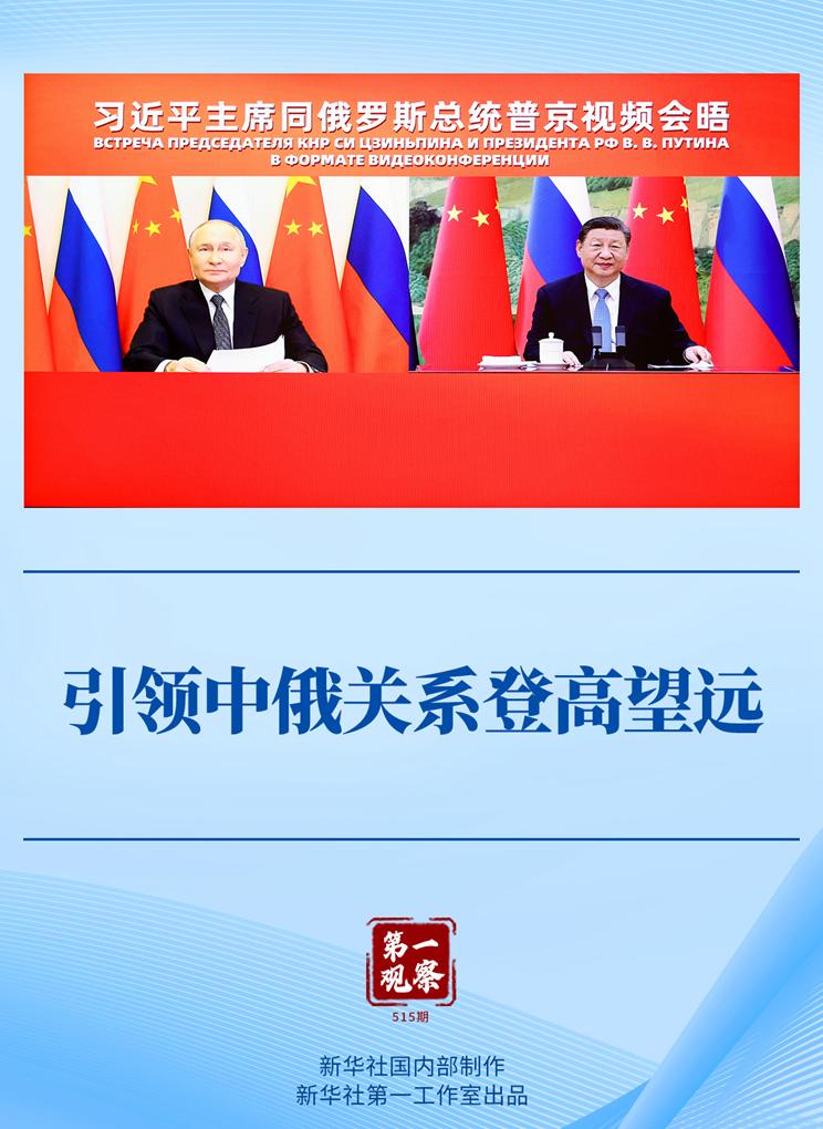 习近平主席在视频会晤中指出:“新的一年,我愿同总统先生一道,继续引领中俄关系登高望远,以中俄关系的稳定性和坚韧性应对外部环境的不确定性,共同促进两国发展振兴,维护国际公平正义。”