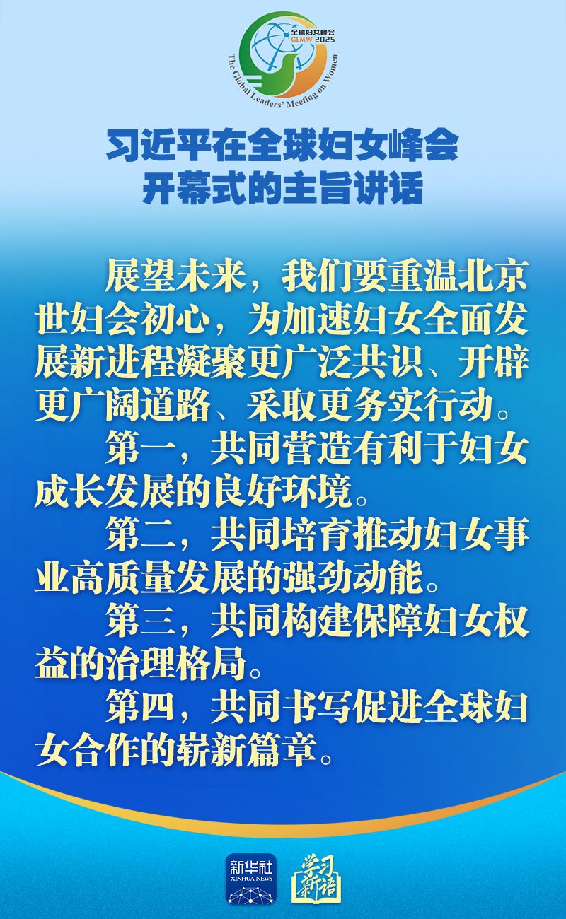 10月13日上午,国家主席习近平在北京国家会议中心出席全球妇女峰会开幕式并发表题为《弘扬北京世妇会精神 加速妇女全面发展新进程》的主旨讲话。讲话金句,一起学习!