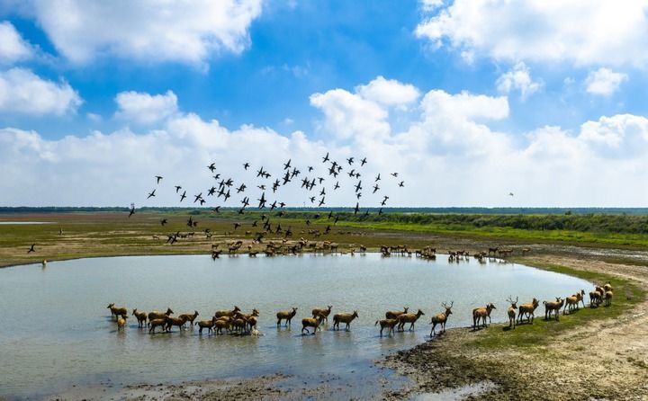 俯瞰塔克拉玛干沙漠,千里绿色长城锁住黄龙。