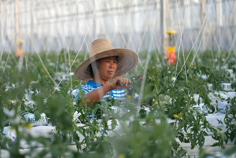 看到总书记来了,正在大棚里劳作的几位村民一下子围拢过来,纷纷向总书记问好。
