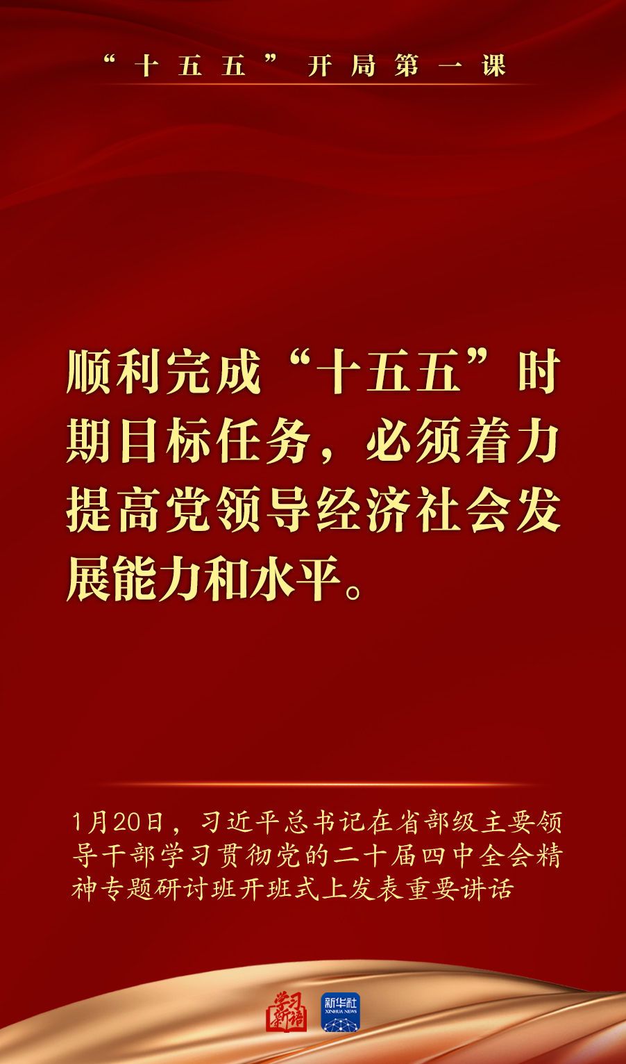 1月20日,省部级主要领导干部学习贯彻党的二十届四中全会精神专题研讨班在中央党校(国家行政学院)开班。习近平总书记在开班式上发表重要讲话强调,深入学习贯彻党的二十届四中全会精神,努力实现“十五五”良好开局。总书记讲话要点,一起学习领悟。