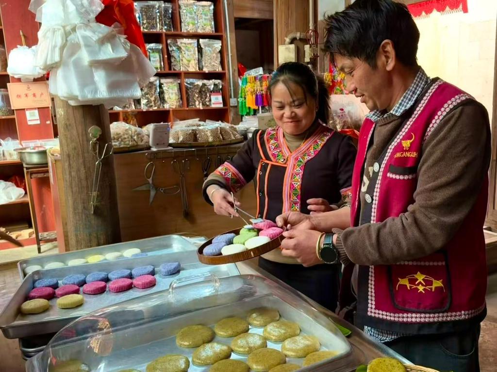 如今,小院被打造成村里的“体验坊”。过年时解馋的年货,变成了乡亲们增收的“特产好物”。生意好的时候,李发顺家一天就能卖两三百个大米粑粑。