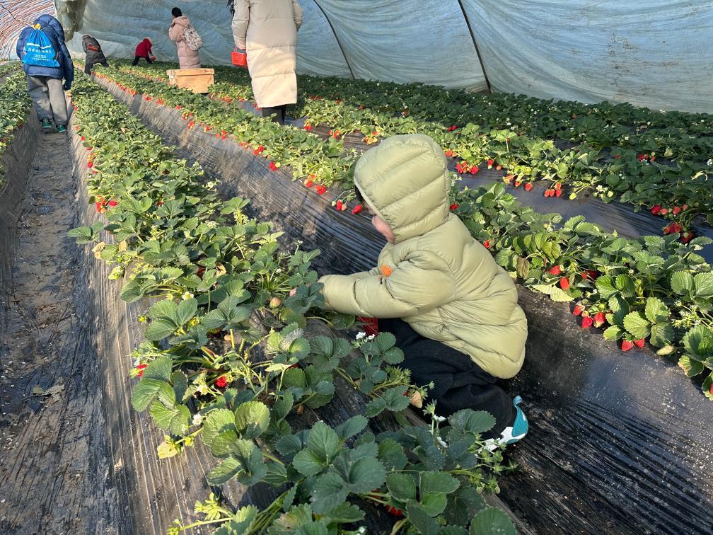 走进河南洛阳孟津区送庄镇十里香现代农业观光园,黄瓜、草莓等蔬果长势喜人,不少前来研学的孩子们抢“鲜”品尝,体验采摘乐趣。