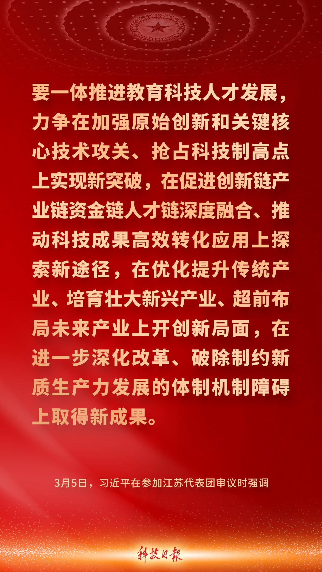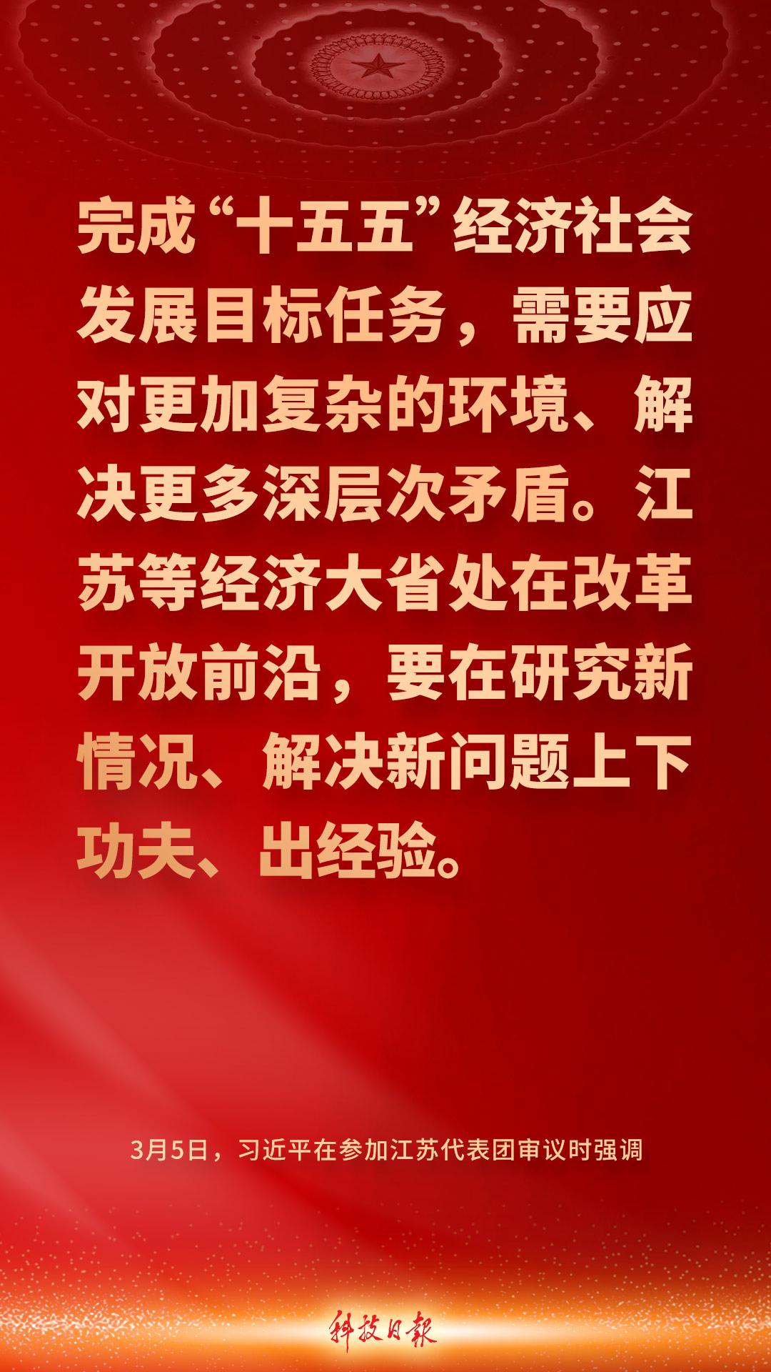 中共中央总书记、国家主席、中央军委主席习近平5日下午在参加他所在的十四届全国人大四次会议江苏代表团审议时强调——