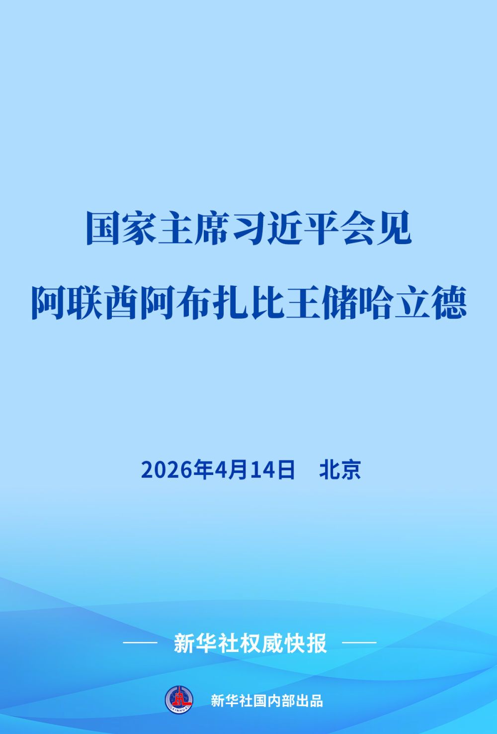 4月14日,国家主席习近平在北京会见来华进行访问的阿联酋阿布扎比王储哈立德。