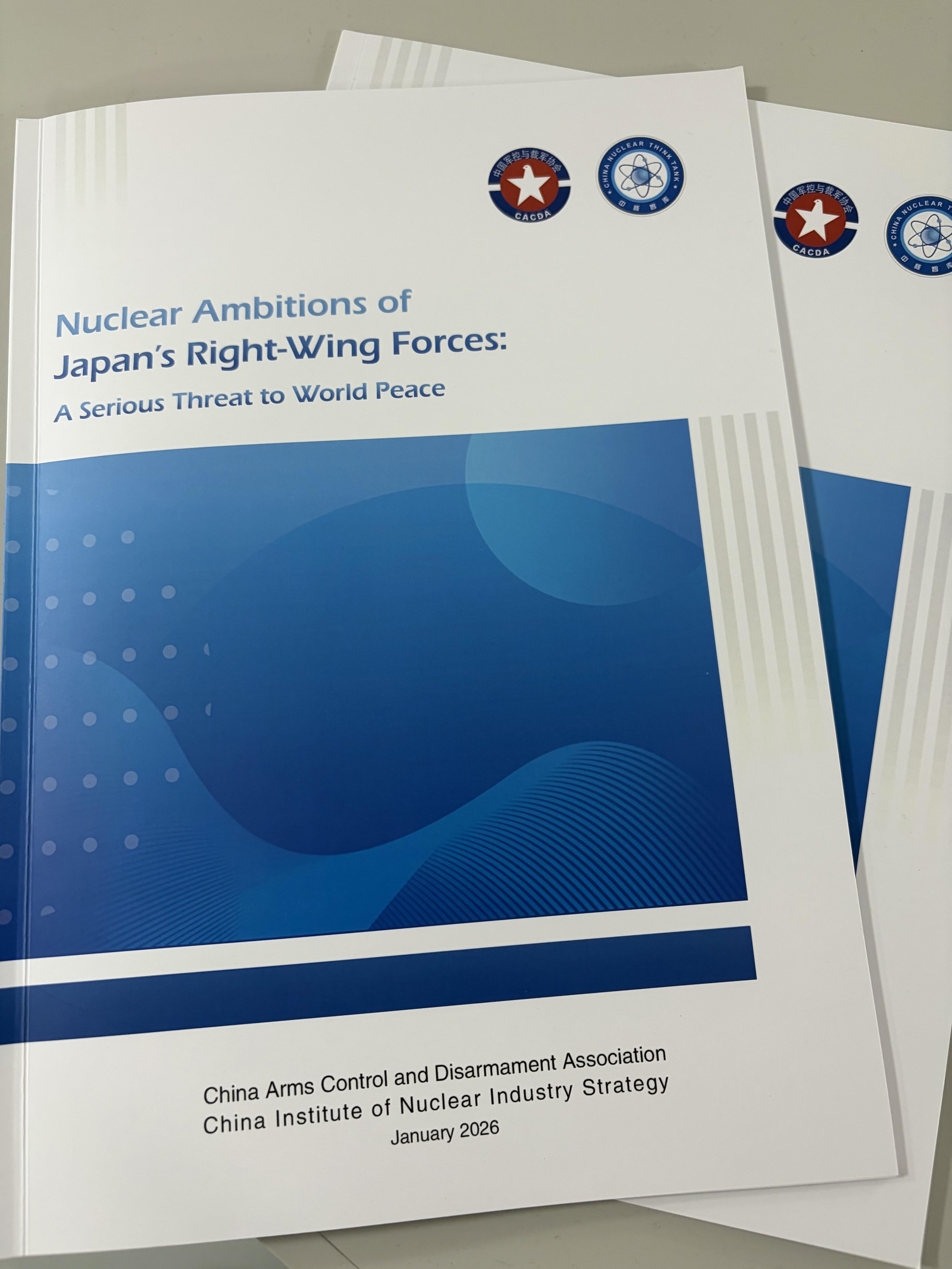 The report Nuclear Ambitions of Japan's Right-Wing Forces puts forward 10 recommendations. They include urging the Japanese prime minister to clarify her erroneous remarks and Japan to strictly fulfill its non-proliferation obligations and address its plutonium stockpile imbalance.