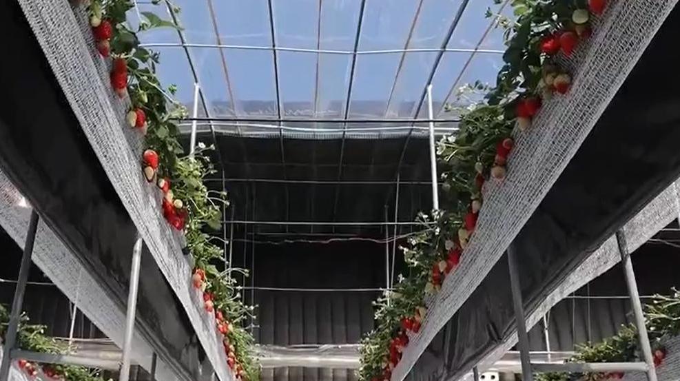Strawberries from Pinglu, a county in Yuncheng city in Shanxi province, northwest China, have entered their harvest period. Different from the traditional ground planting, these strawberries are grown in hanging belts on scaffoldings in greenhouses.