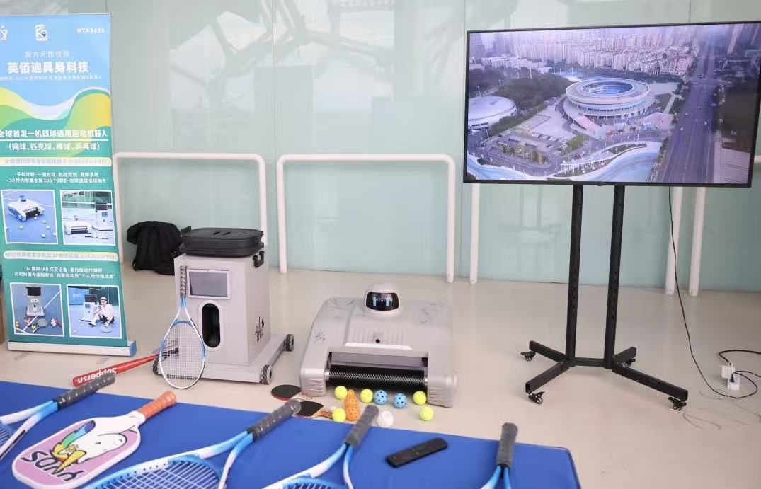英佰迪的一机四球AI教练、捡球机器人等成果亮相(主办方供图)