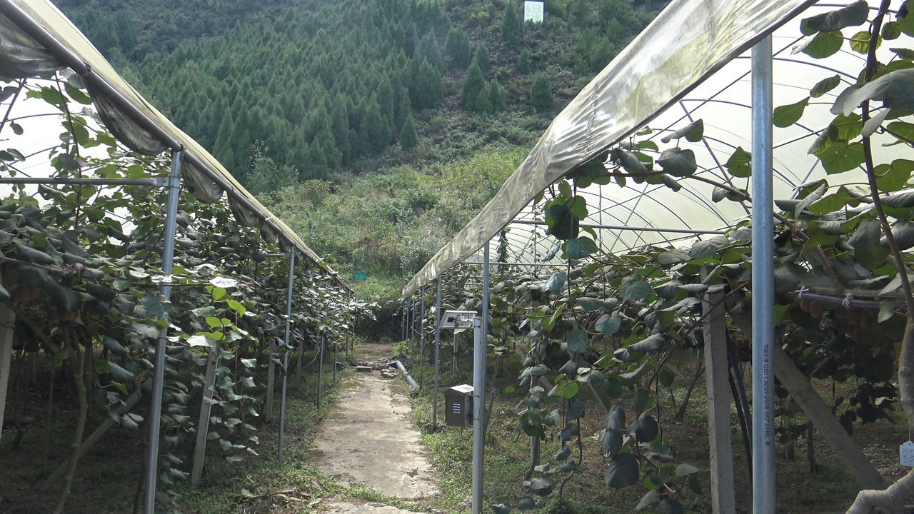 “我们的试验采用团队研制的纳米转光膜,设计了简易竹木拱棚、简易钢架大棚、连栋钢架拱棚和夯链覆膜屋脊棚4种棚架类型,深入研究了棚内空气温湿度、光照以及土壤理化指标等生态环境因子变化对猕猴桃溃疡病防治效果的影响,提出了猕猴桃分阶段避雨的栽培模式。”科技特派员廖钦洪博士说,每年10月底至11月上中旬,在秋施基肥后,搭建避雨大棚,11月底完成盖膜。简易竹木拱棚,在6~8月揭膜降温,钢架拱棚则加设卷膜开窗系统,在6~8月及时开天窗降温,这样既避免了重庆高温天气对猕猴桃产生的热害,又改善了猕猴桃周围的小气候环境,切断了溃疡病菌最重要的风雨传播途径,发病率降低至3.5%,较传统露地栽培降低了20多个百分点,摆脱了猕猴桃病害防治“靠药治病”的局面。