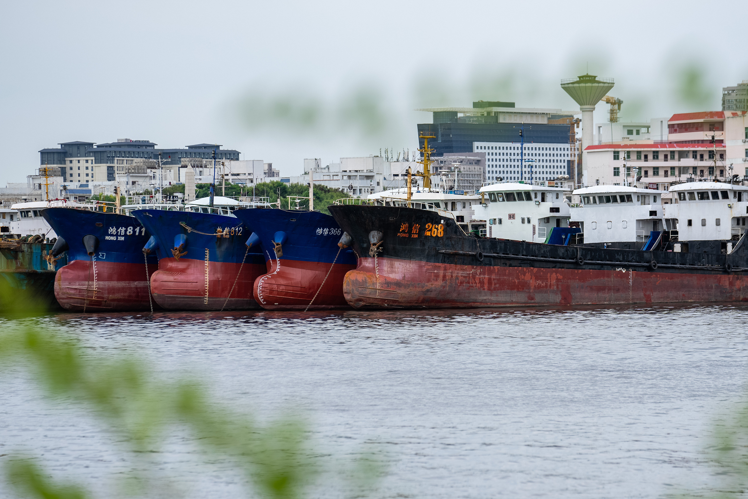 2023年7月16日,海口,不少船舶停泊在海甸溪,防范台风“泰利”。视觉中国供图