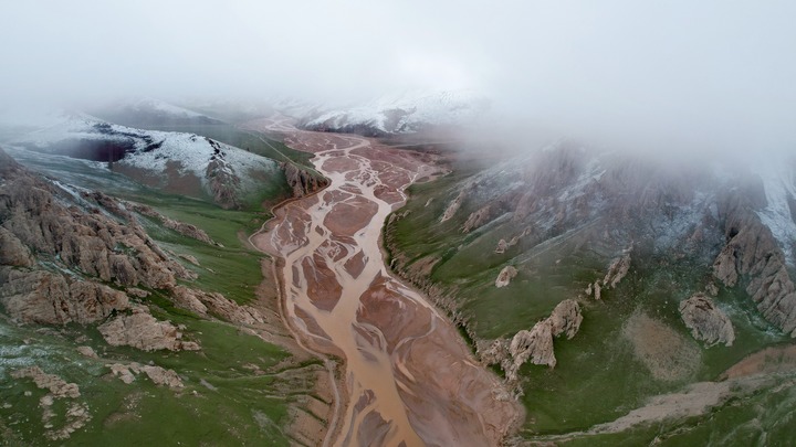 这是7月26日拍摄的通天河支流的辫状河道(无人机照片)。新华社记者 刘诗平 摄