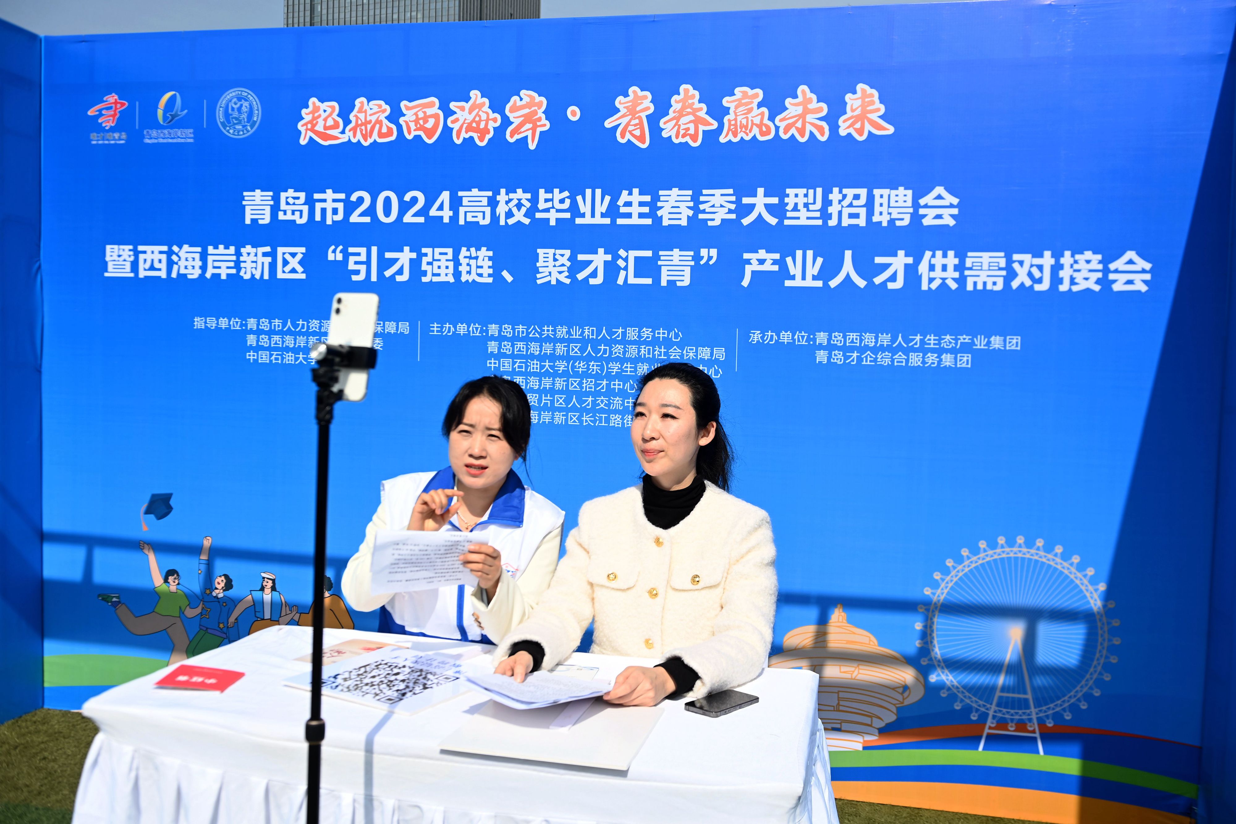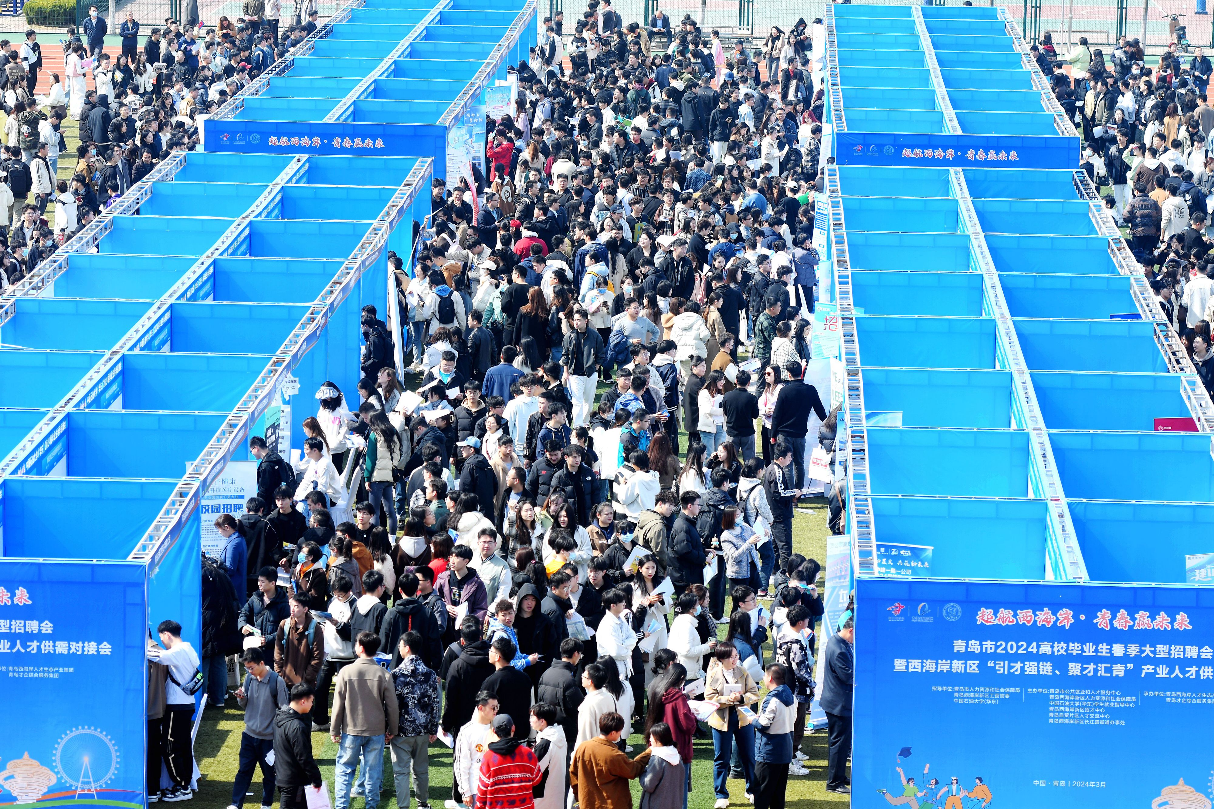 3月23日,青岛市2024高校毕业生春季大型招聘会暨青岛西海岸新区“引才强链、聚才汇青”产业人才供需对接会在中国石油大学(华东)举办。