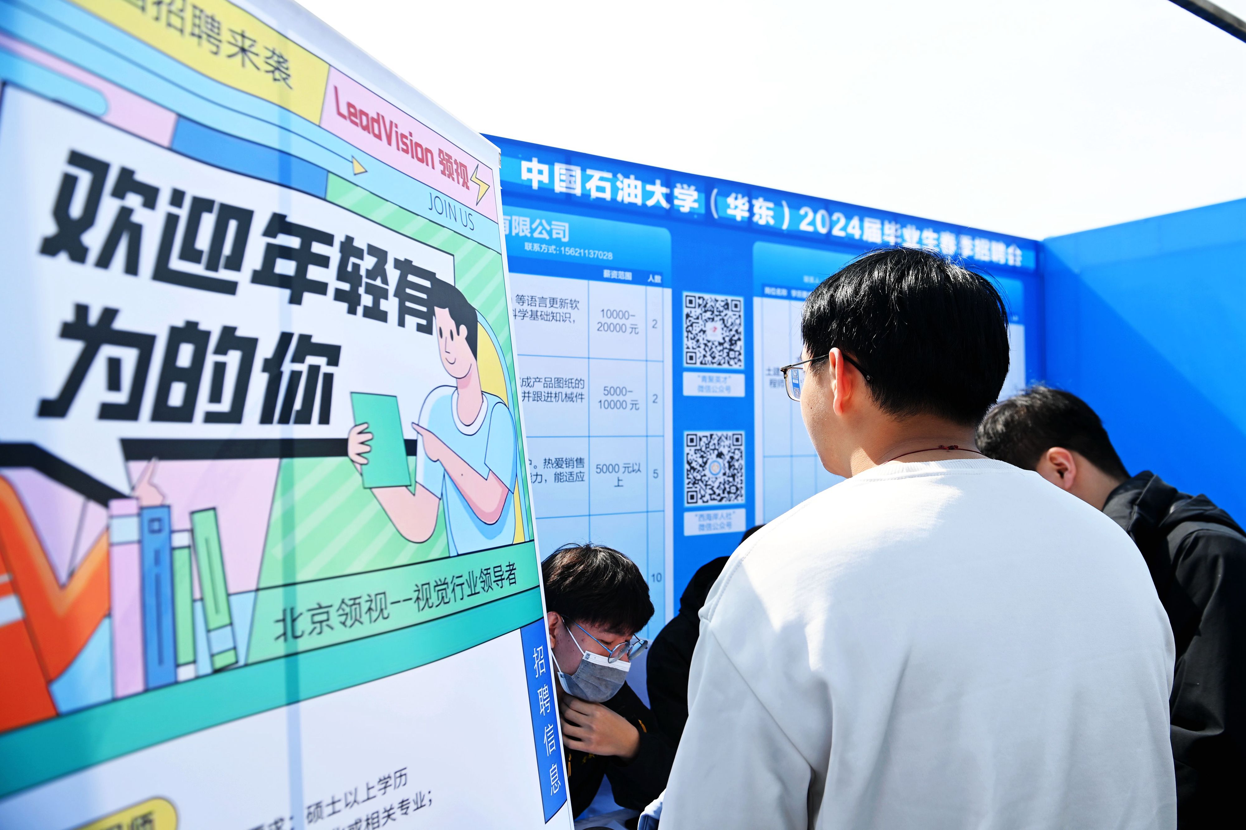 3月23日,青岛市2024高校毕业生春季大型招聘会在中国石油大学(华东)举行。俞方平 摄