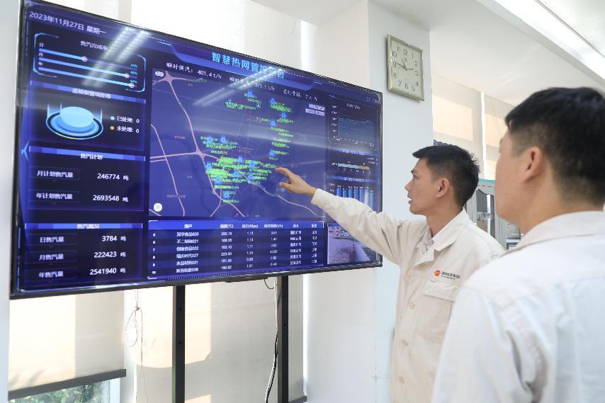 在国能(肇庆)热电有限公司智慧热网管控平台的大屏幕上,广东肇庆高新区全区供热管网的实时流量、监控画面一目了然。作为智慧城市重要建设范畴之一,该平台可实时分析园区热力系统运行情况,对热网全天候、全方位、智能化管控,全方位提升供热管理和服务水平。