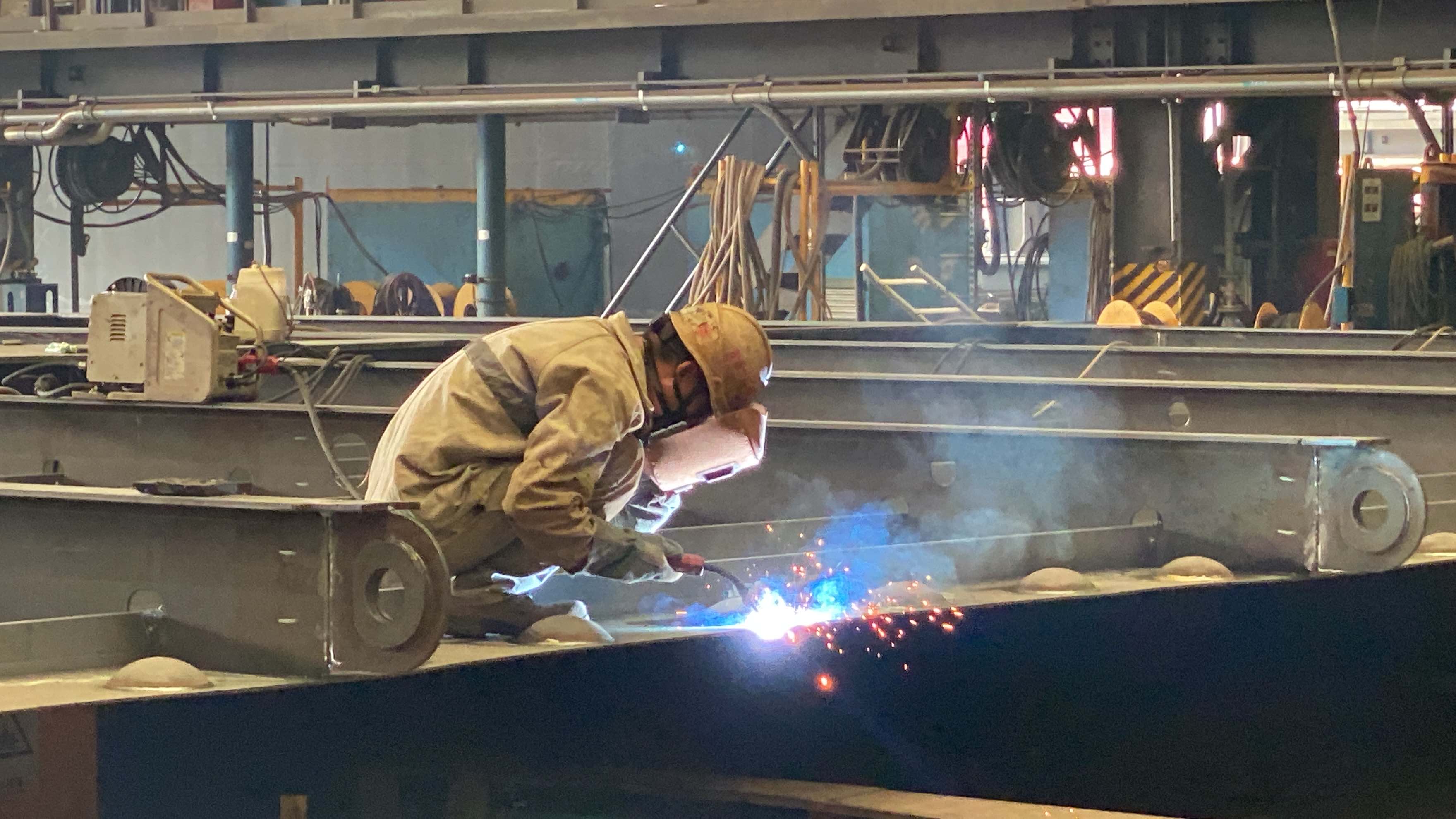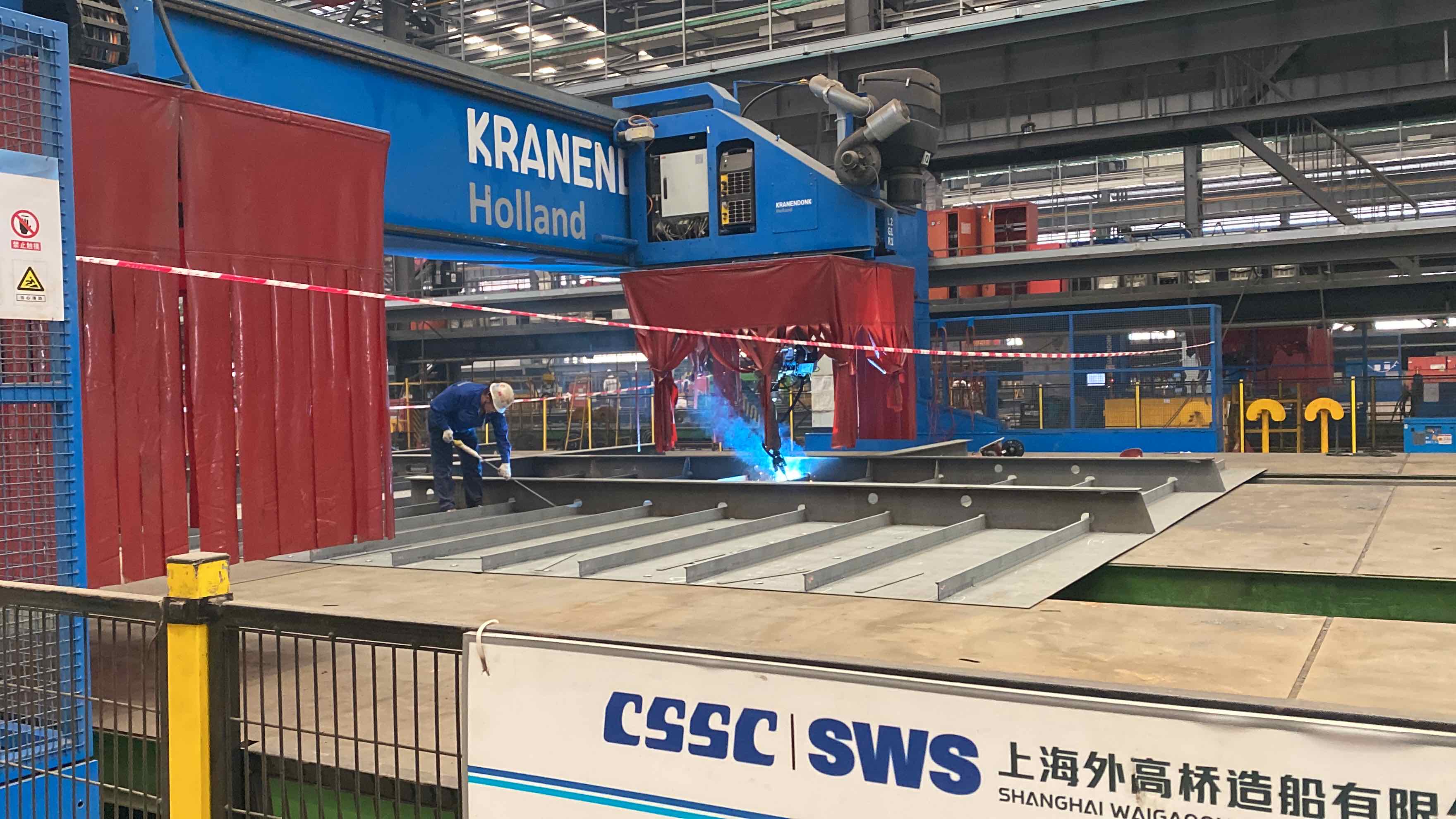 对于大型邮轮来说,空船重量的微小偏差可能导致载重吨的较大损失,而重心位置的偏差则会对稳性安全或乘客舒适度带来较大影响。为此,大型邮75%船体使用的是厚度为4—8毫米的薄板。外高桥造船用时18个月,专门打造了薄板智能生产中心。薄板中心创新采用激光切割、机器人焊接等一批国内造船行业首次运用的新装备和技术,实现5G网络全覆盖。通过智能装备、工业物联网技术、智能车间制造执行系统和零部件物流系统,提升薄板吊运、切割、加工和建造的效率与精度,填补了国内船舶工业薄板智能建造的空白,为国产大型邮轮高品质、高效能建造提供技术保障。