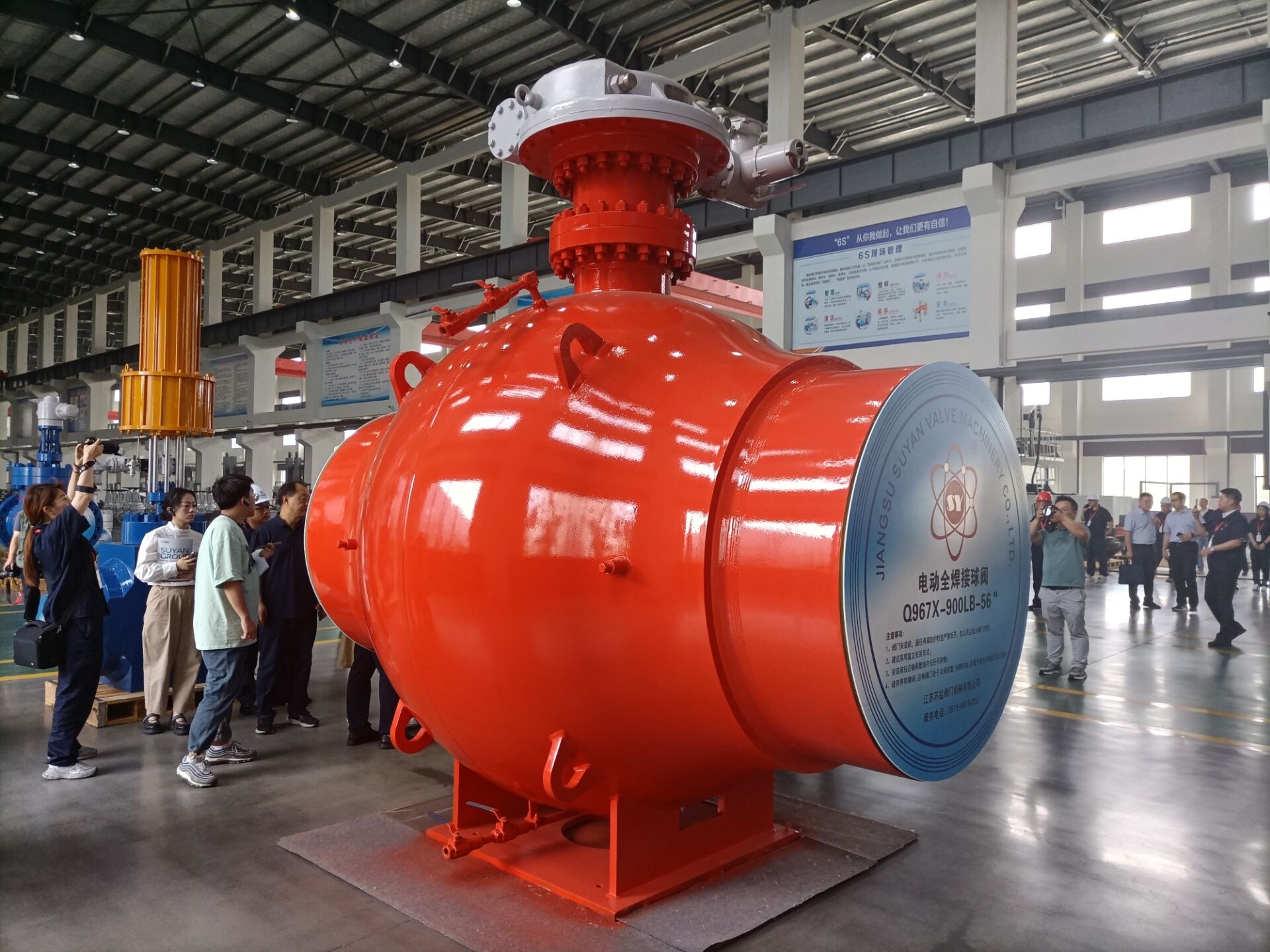 “这台电动全焊接球阀,如果从国外进口,要1000多万元。现在经过我们国产化的技术攻关,价格可以降到原来的三分之一。”6月6日,记者随“高质量发展调研行”江苏主题采访活动走进江苏苏盐阀门机械有限公司(以下简称“苏盐阀门”)时,车间里展示的一台红彤彤的大号电动全焊接球阀引人注目。球阀口径达1.4米,差不多有3米多高,要四五个人环绕一圈才能抱住。