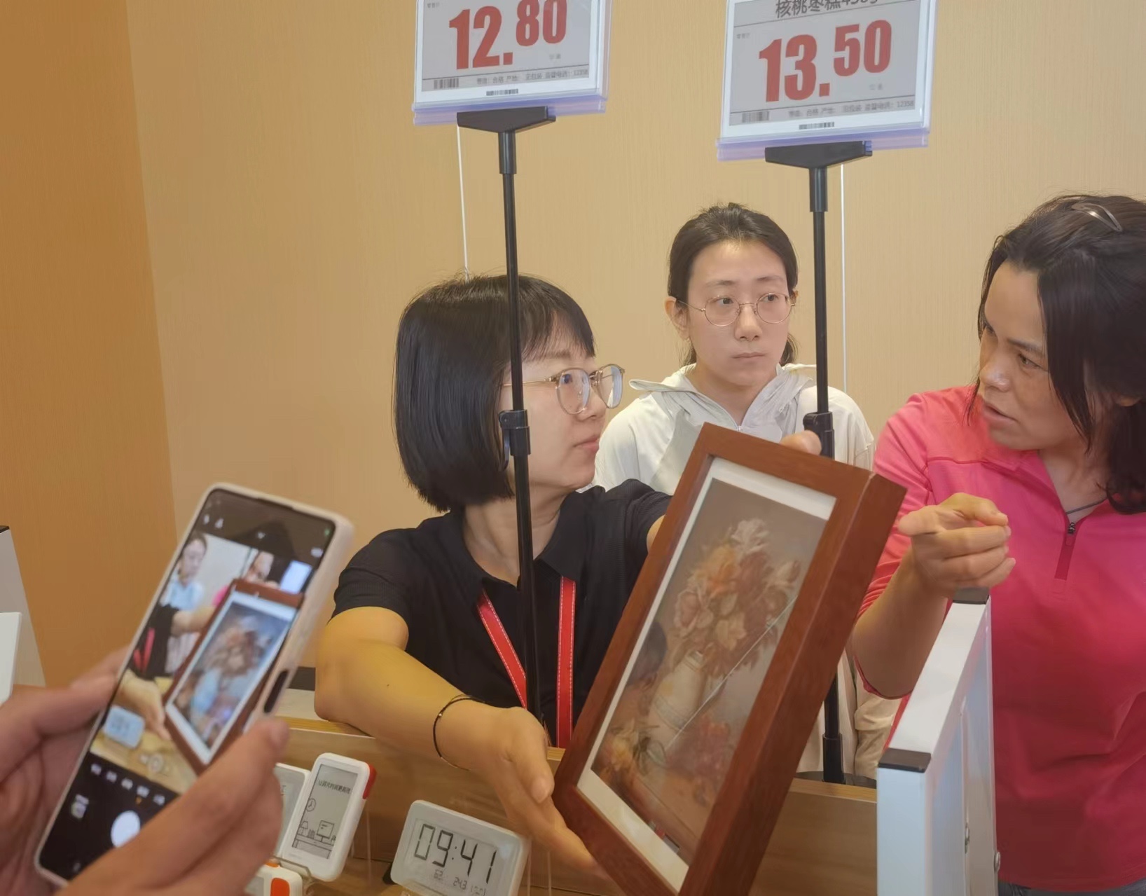 “电子纸的功耗非常低,节能环保,护眼无蓝光,而且能实现几秒钟同时切换货架标签,可节省大量人力。”亚世光电副总裁边瑞群告诉记者。