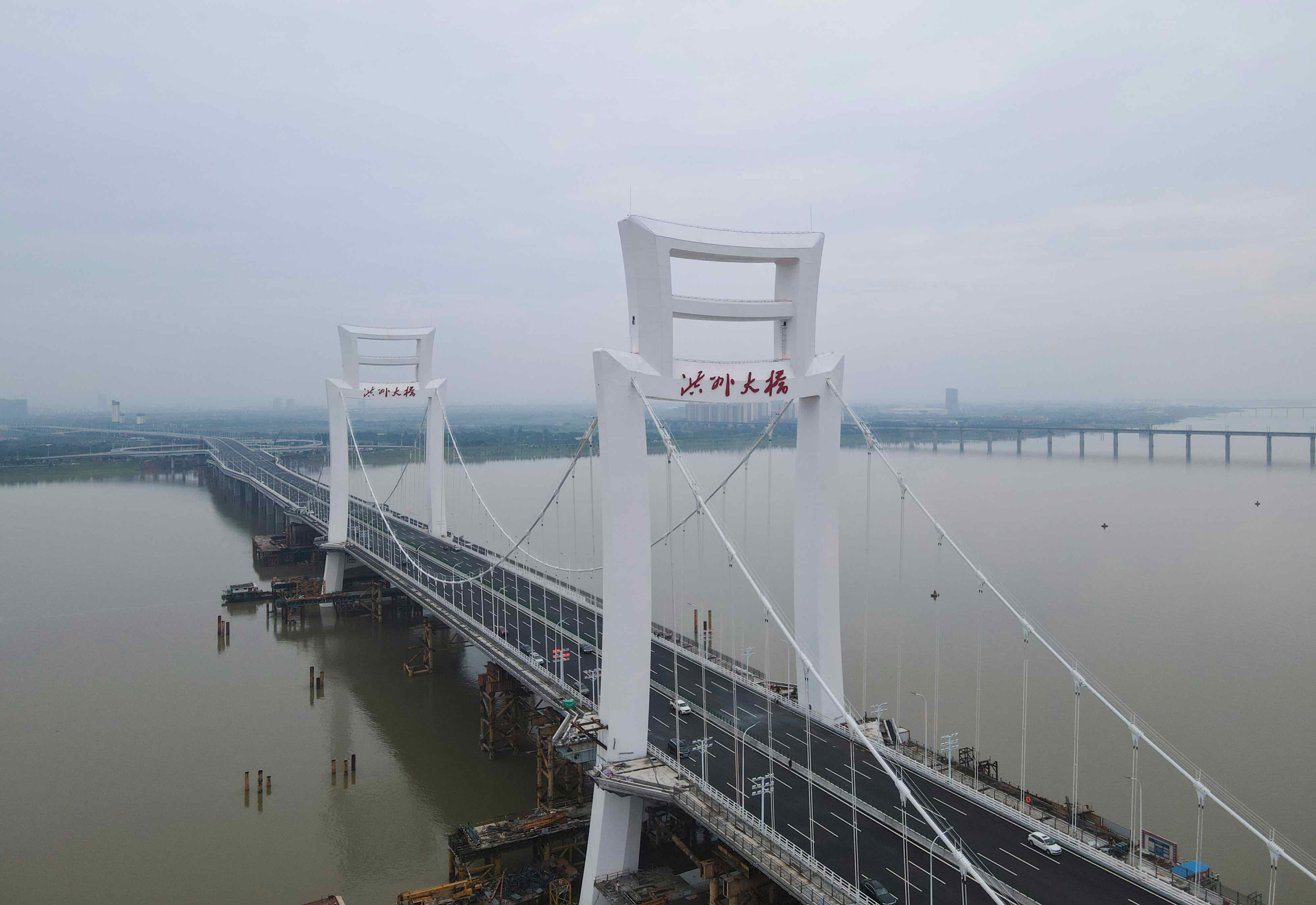 7月1日上午8时38分,由中铁大桥局承建的世界首次采用嵌入式索鞍设计、世界首座“昌”字型双塔、全国最大矢跨比钢混组合梁自锚式悬索桥——洪州大桥正式建成通车。