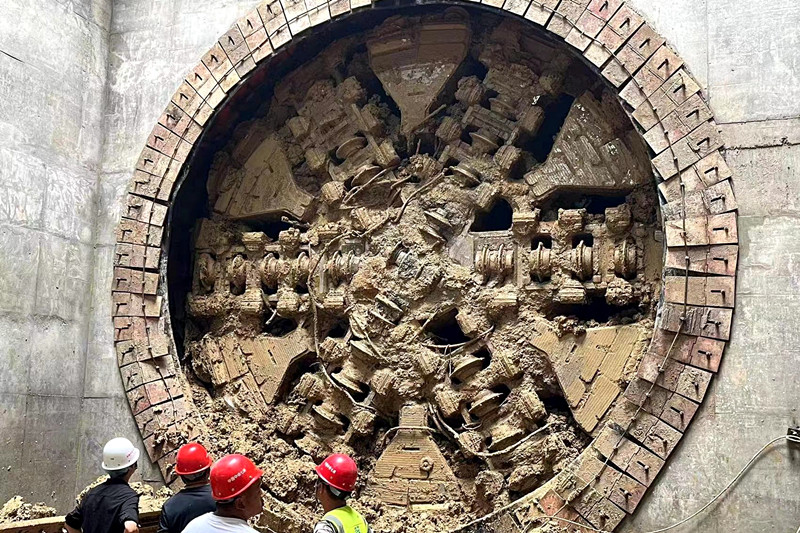 掘硬岩——盾构机发出150米后遇到274米的中风化石英砂硬岩区间,强度达到214兆帕,盾构机掘进如同在钢板上钻孔。“项目部对刀盘及时更换,配备全盘滚刀,刀刃抗压强度达到2800兆帕,做到‘削铁如泥’,历时一个月突出重围。”中铁七局武汉地铁12号线项目负责人文斌说。