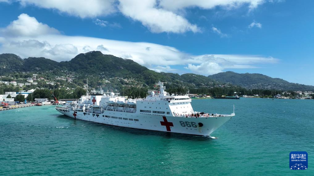 当地时间7月12日,执行“和谐使命-2024”任务的中国海军“和平方舟”号医院船完成对塞舌尔的访问,驶离塞舌尔维多利亚新港码头,前往任务第二站坦桑尼亚。