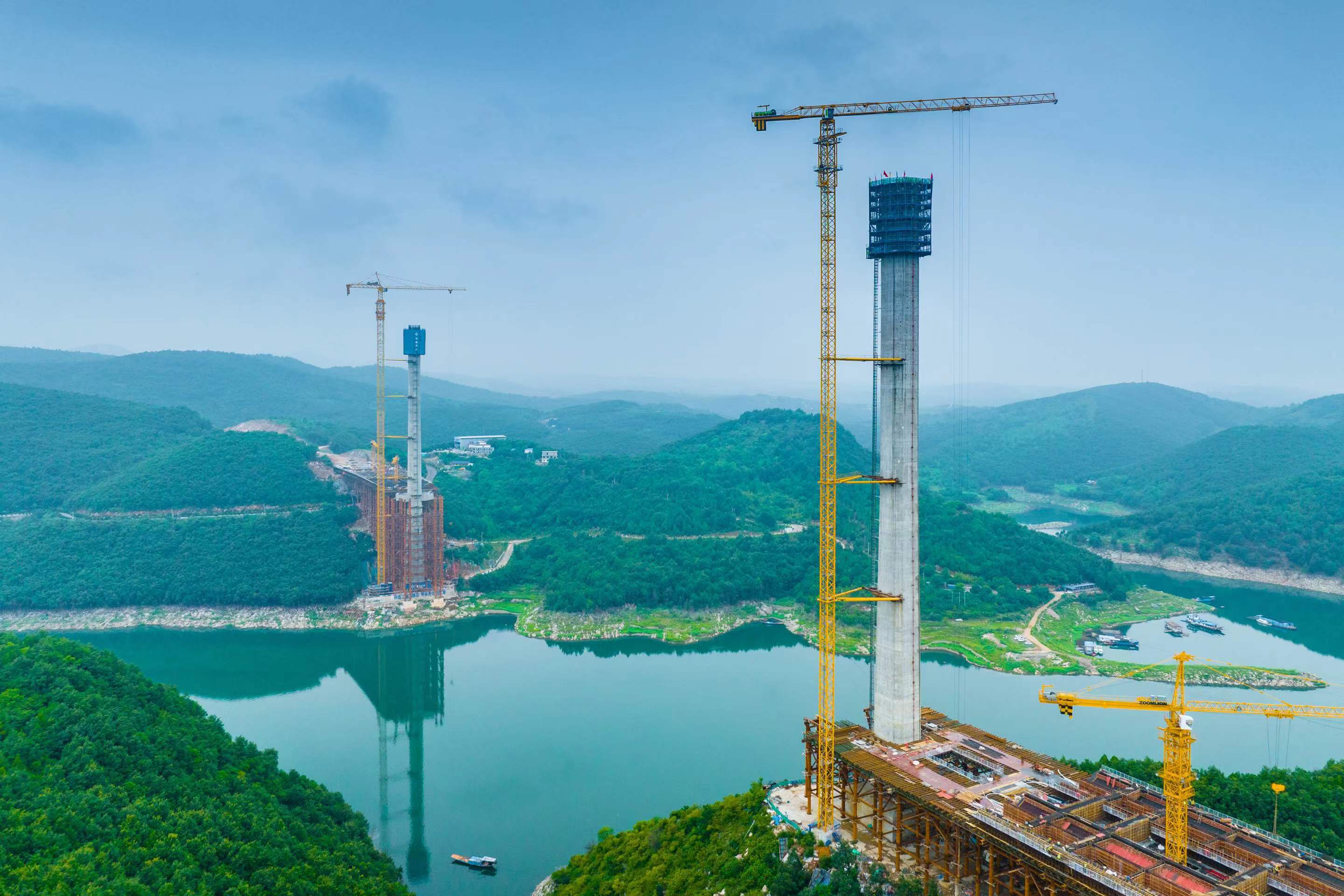 7月13日,由中交二航局承建的国内最大跨径跨峡谷分离式混合梁斜拉桥——河南渑淅高速丹江小三峡特大桥北岸主塔成功封顶。