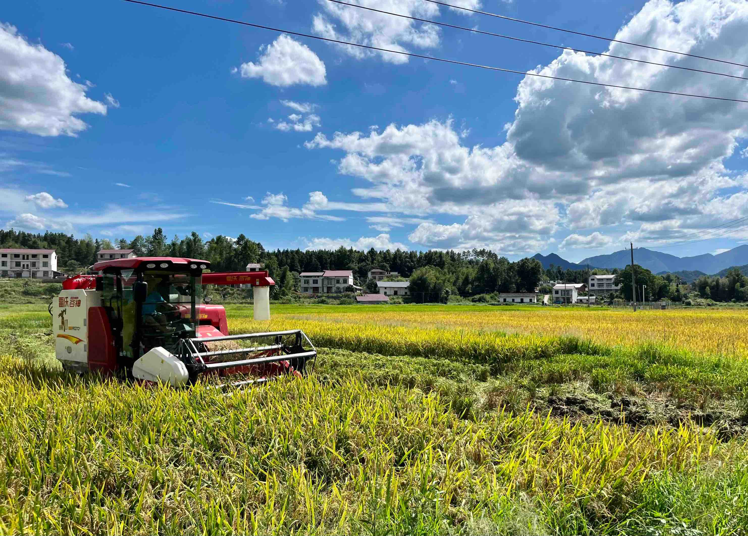 收割机此时已在田埂跃跃欲试,迫不及待要将丰满的稻穗揽入口中。