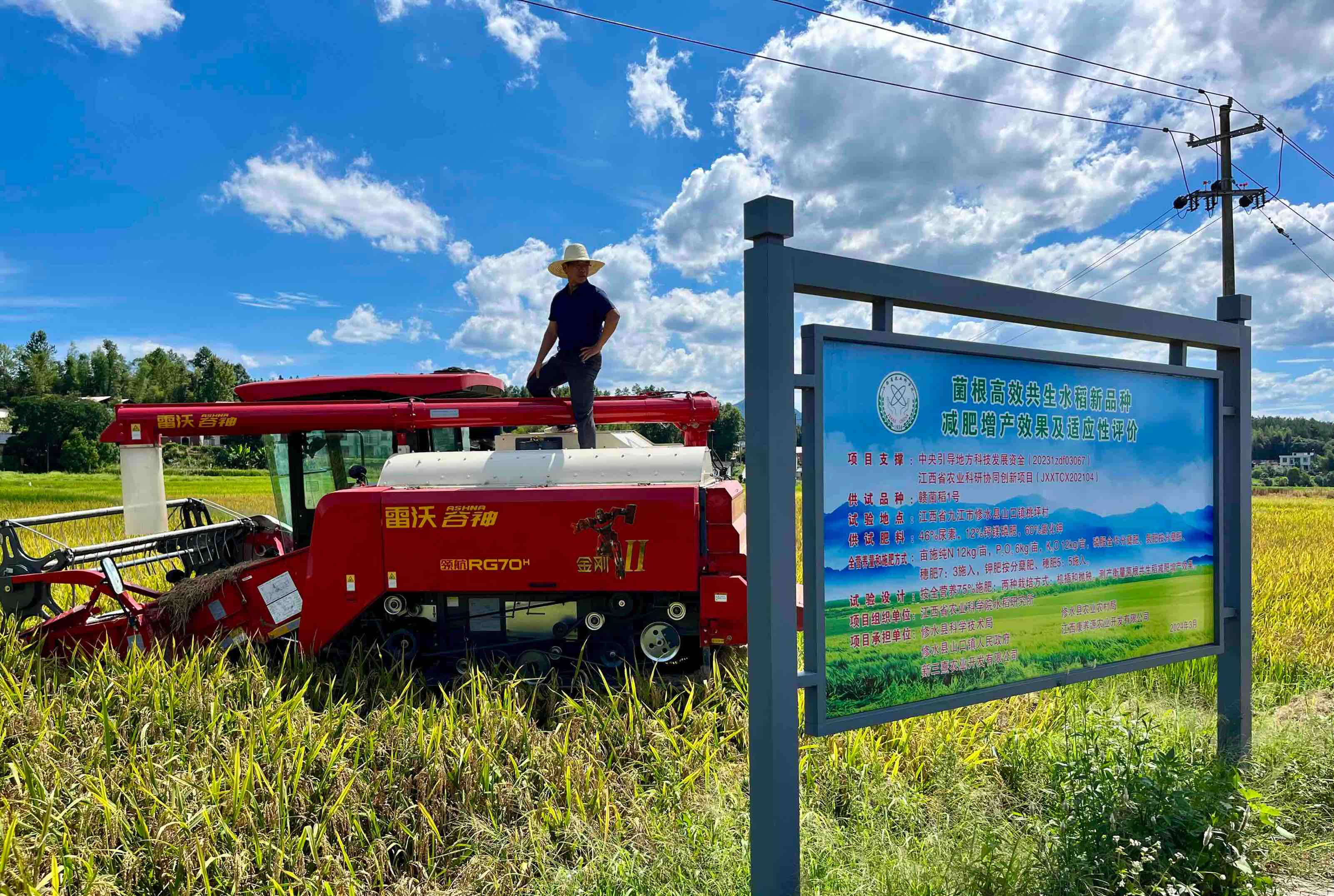 7月17日,记者与江西省科技特派团修水水稻团成员、江西省农科院水稻所专家们向着江西九江修水山口镇的方向驶去,为江西九江菌根共生稻新品种“赣菌稻1号”测产。