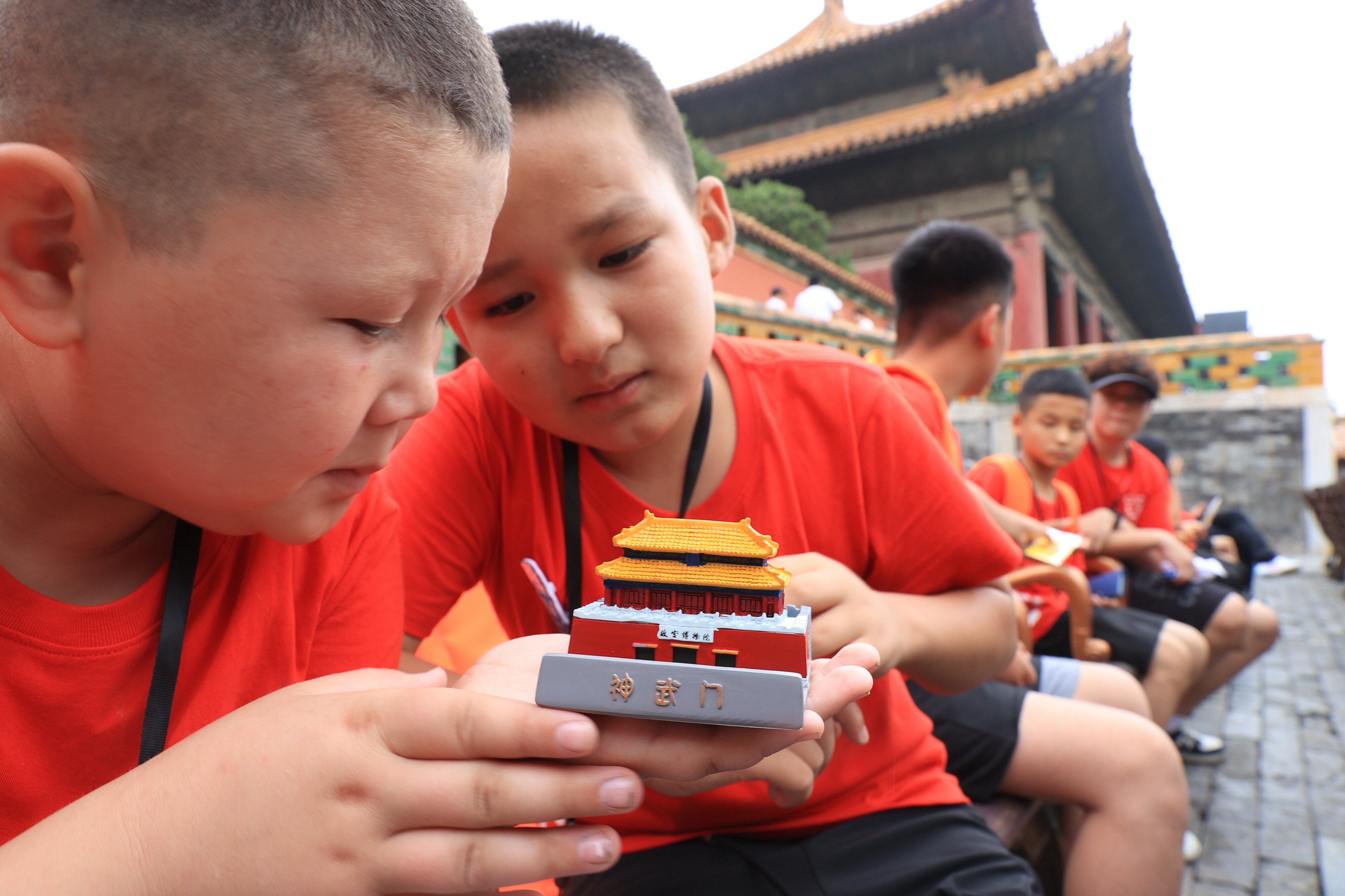 在故宫博物院,孩子们对故宫博物院文创品爱不释手。张利民摄