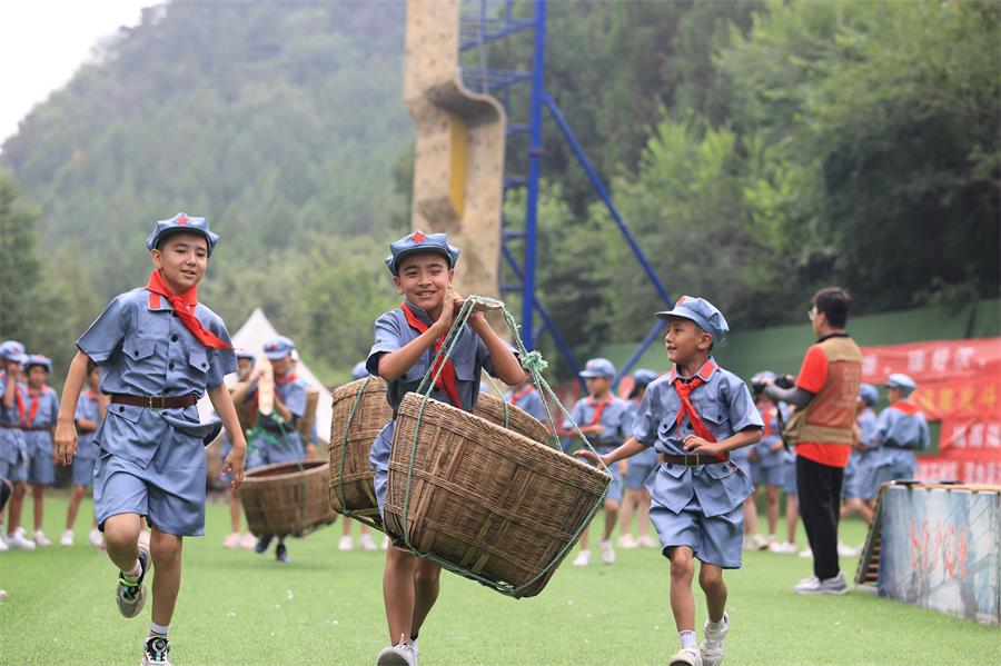 孩子们体验“南泥湾大丰收”团队接力赛。张利民摄