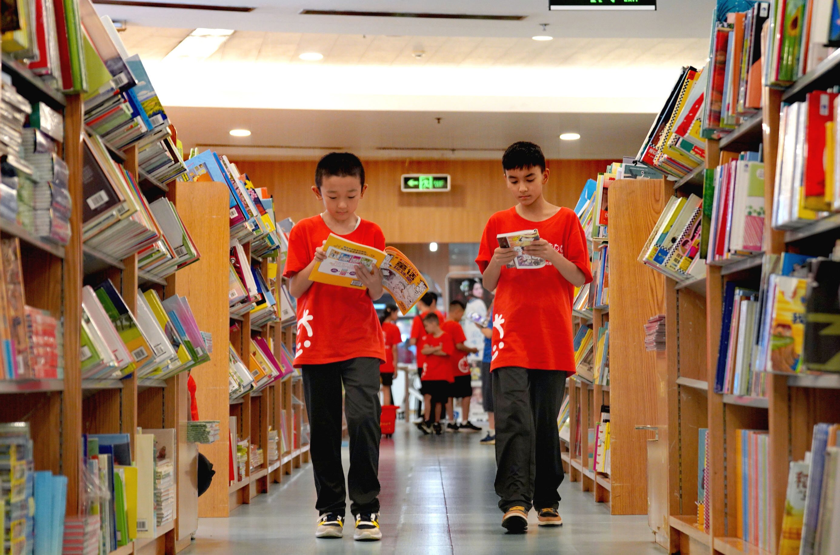 在北京图书大厦,孩子们挑选喜欢的图书。李叶超摄