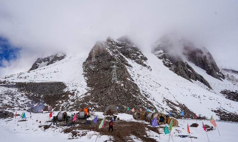 工程建设期间,国网新疆电力有限公司全过程派驻专业技术骨干到达现场,与参建人员一起,共同确保项目建设安全有序推进。数据统计,建设中,全线共搭设云梯103条,最长为396米,相当于132层楼高,与地面交角80度;架设重型索道348处,单基最长1.3千米;搭设人工栈道2处,位于海拔5343米处,栈道坡度76度左右;搭设索桥8处,单条最长410米。