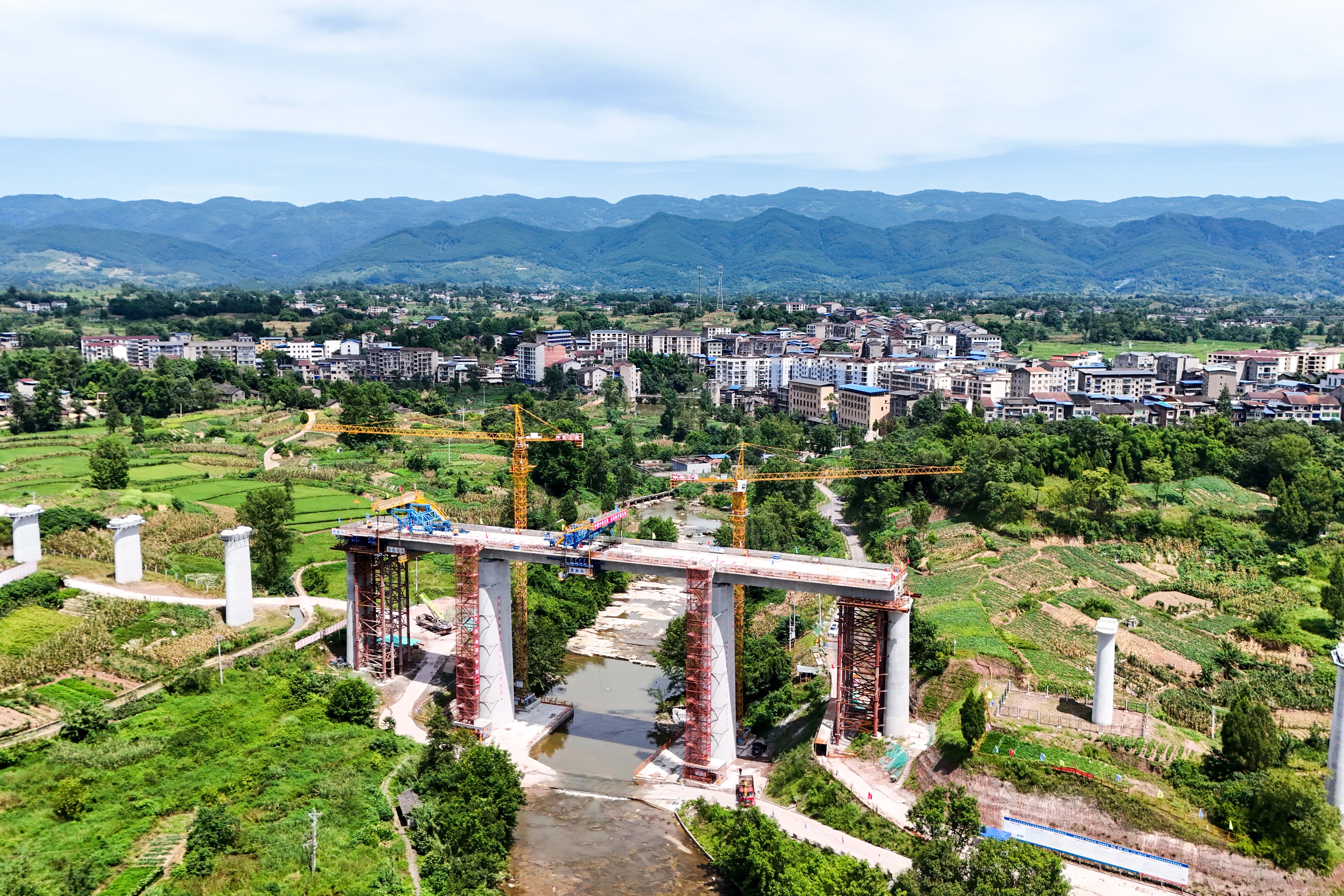 西渝高铁康渝段龙滩河特大桥连续梁顺利合龙。中铁五局供图