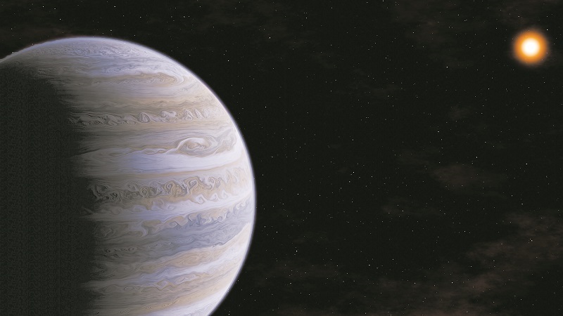 环绕橙矮星运行的寒冷气态巨行星(艺术图)。