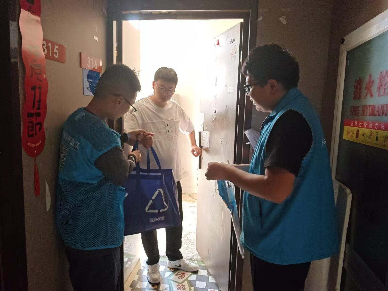 由社区工作人员、党员志愿者、物业管理人员组成的宣传队伍,挨家挨户上门发放《生活垃圾分类投放指南》及宣传纪念品,并逐户告知投放点位、投放时间段,以及投放注意事项,引导居民自觉按时分类投放生活垃圾。