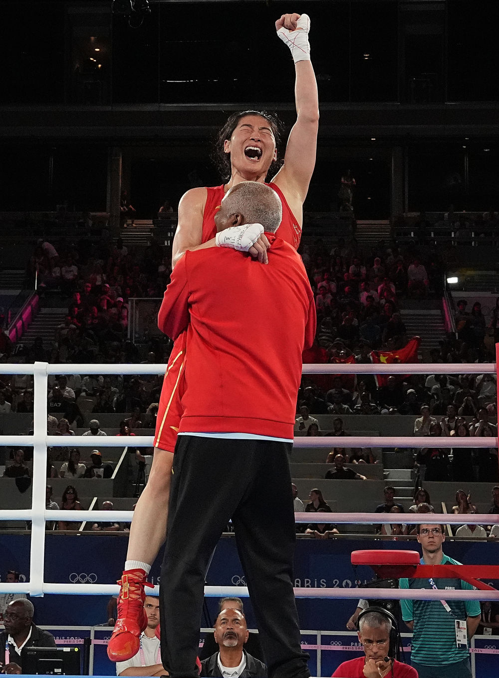 8月10日,在巴黎奥运会拳击项目女子75公斤级金牌赛中,中国选手李倩战胜巴拿马选手拜伦,夺得金牌。