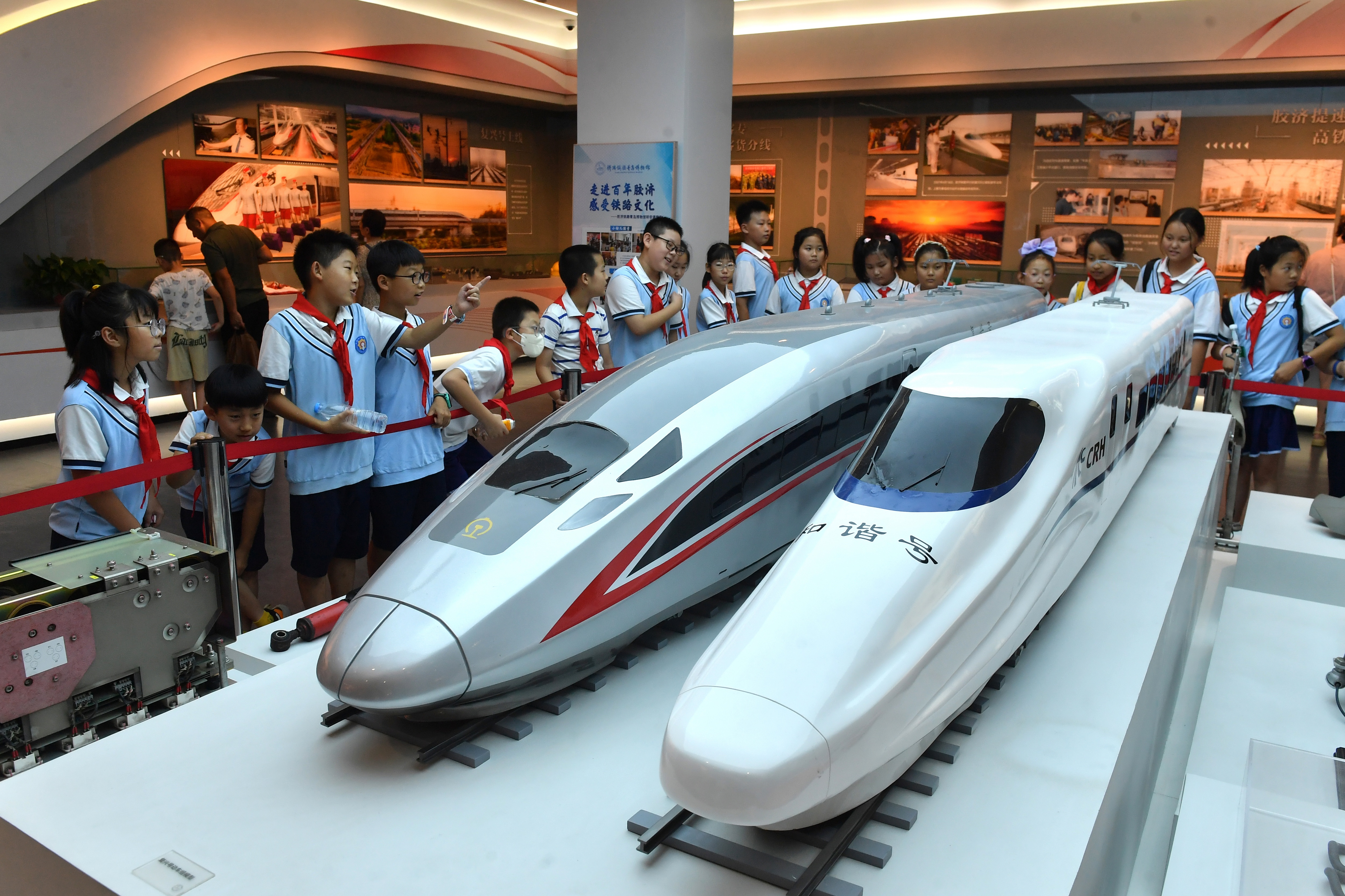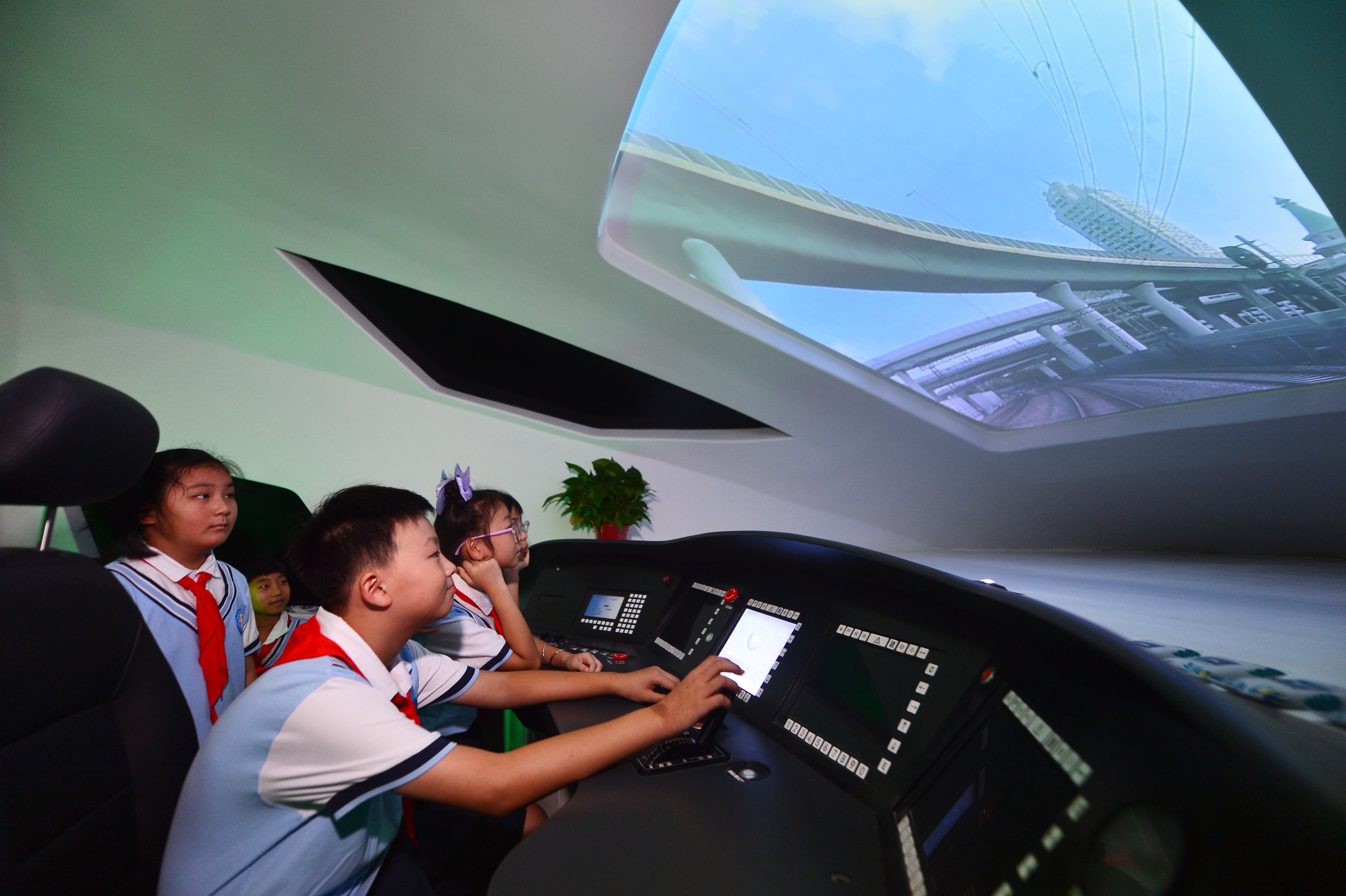 暑假期间,山东省青岛市市北区开平路小学的学生们来到胶济铁路博物馆,探秘高铁发展历程。孩子们通过高铁智能科技演示、模拟高铁驾驶等环节,近距离感受铁路建设发展新成就,乐享科技假期。