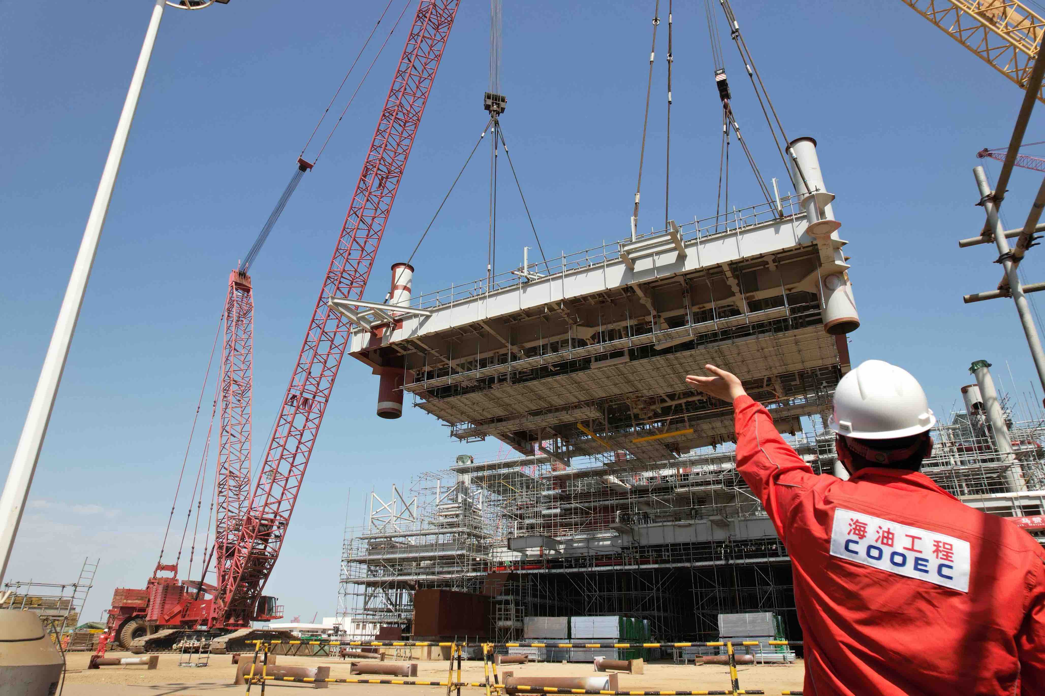 据海油工程国际工程公司总经理兼马赞项目经理刘瑞介绍,海油工程负责平台建造、预调试、装船等工作,平台规模体量大、集成化程度高,采用国际上最严格的标准进行建造,对施工方案、作业流程、安全质量等要求都极为苛刻,仅质量规范就有2000多份,给项目实施带来巨大挑战。自2021年10月开工以来,项目团队克服新冠疫情、设备到货延迟、技术空白等诸多困难,自主开发智能化管理平台,创新“一体化+可视化”建造模式,并大规模应用复合材料自动焊接、相控阵超声波检验等先进技术,施工效率、质量合格率、安全绩效等均达到先进水平。