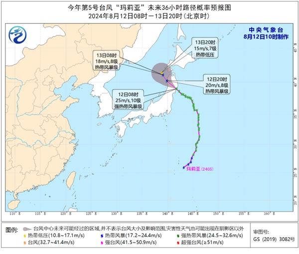 今年第5号台风“玛莉亚”今天(12日)上午8点钟前后在日本本州岛东北部的岩手县沿海登陆(25米/秒,988百帕,强热带风暴级)。上午8点钟,其中心位于日本本州岛岩手县境内,就是北纬39.0度、东经141.7度,中心附近最大风力有10级(25米/秒,强热带风暴级),中心最低气压为988百帕。