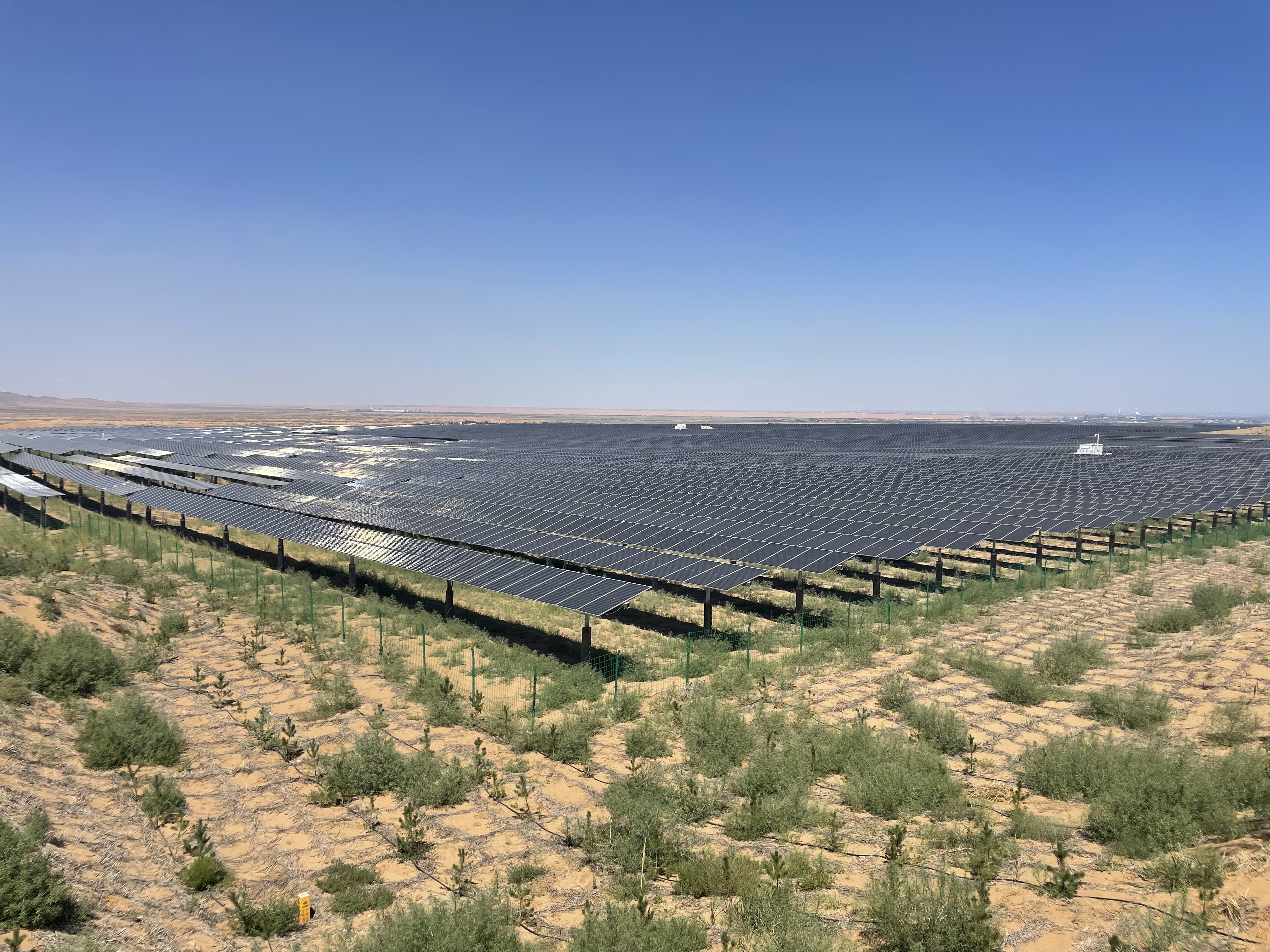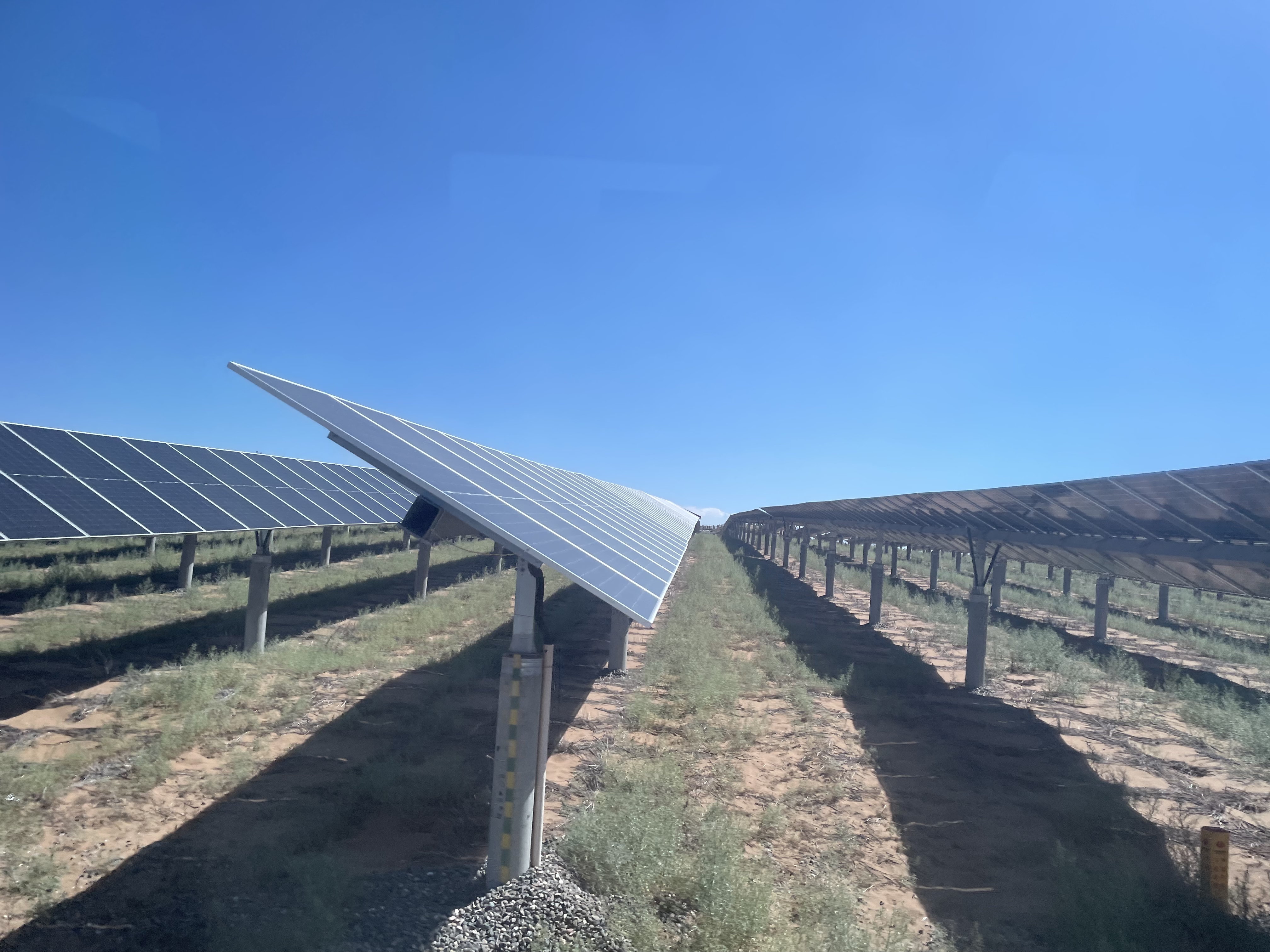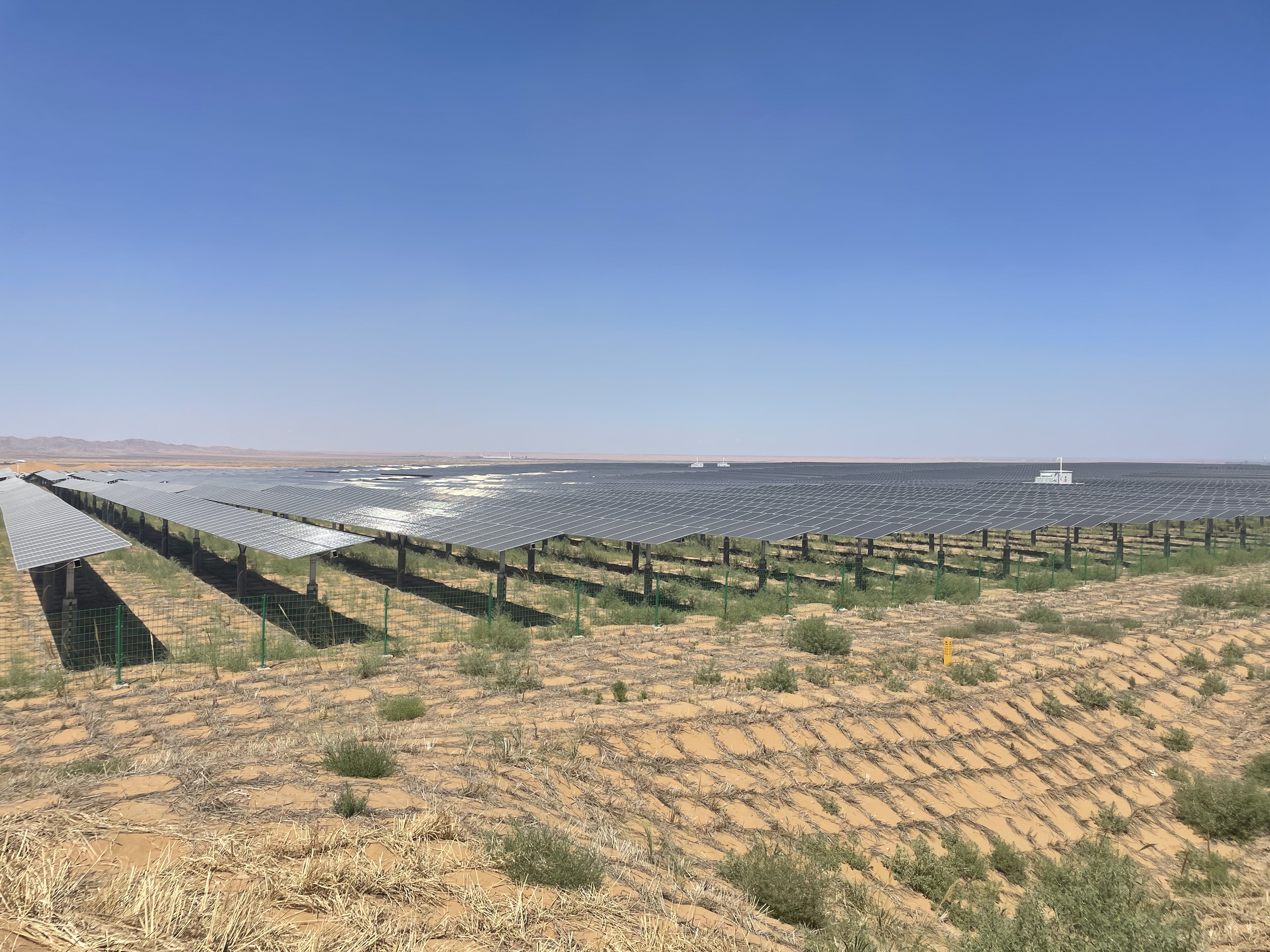 宁夏腾格里沙漠新能源基地是国家千万千瓦级“沙戈荒”基地中首个备案、开工、投产的基地项目。该项目首期规划容量300万千瓦光伏,其中一期100万千瓦于去年4月完成建设并网发电,二期200万千瓦正在建设中。