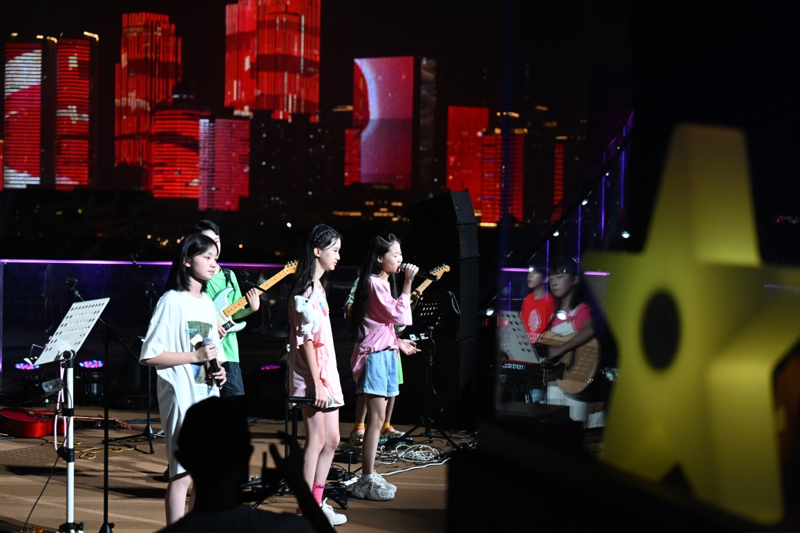 夜幕降临,随着灯光点亮海岸,一首《我是顽石》拉开了本次音乐会的序幕。鼓点分明的旋律,青春活力的嗓音,瞬间点燃了现场观众的热情。随后,来自上海、安徽、青岛等地的小歌手、小乐手相继登台,演唱《飞翔的梦》《山水长相逢》《烟雨为序》《爱让花成花》等原创歌曲,用精彩的表演为观众带来不一样的海边音乐体验。