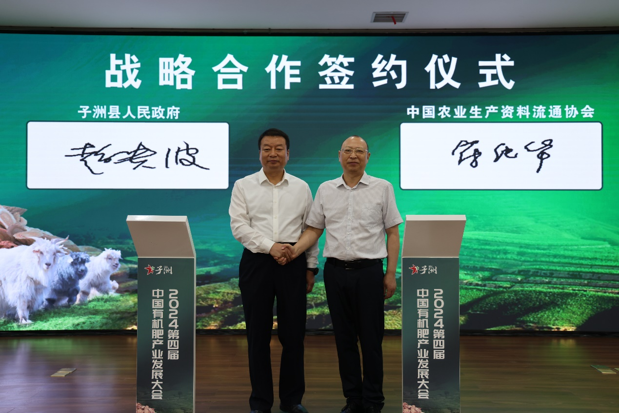 会议期间,中国农业生产资料流通协会与子洲县人民政府签订战略合作协议,西安欣兴农业科技有限公司、绥德县康达种养殖农民专业合作社、宁夏益洋生态农业旅游合作社、陕西海涵领头雁农业发展有限公司、河北拾安农业发展有限公司、圣道农业产业集团有限公司等6家单位与陕西浩丽绒山羊科技发展有限公司签订有机肥购销协议。