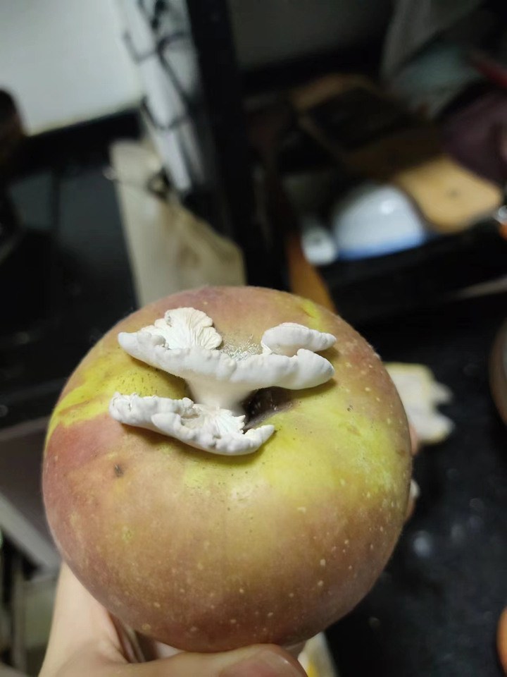 在此前对赵琪的采访中,记者了解到,目前“果菌王”还处于驯化阶段,接种在苹果等其他基质上的“果菌王”尚处于生长阶段。