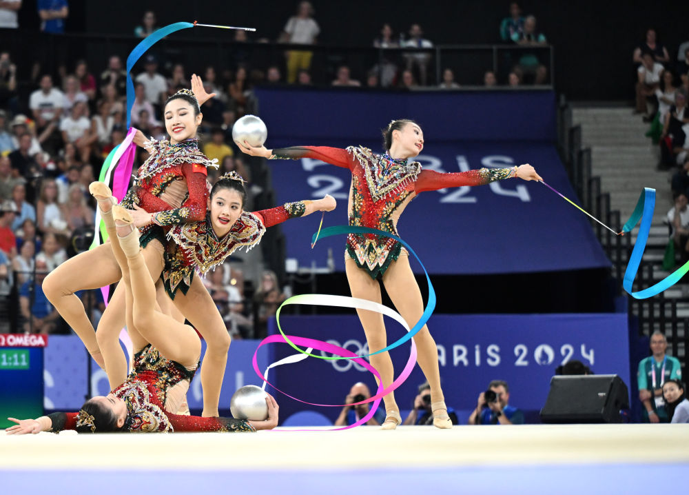 拉夏贝尔门体育馆,艺术体操集体全能决赛正在上演,观众为这场表演屏住呼吸。