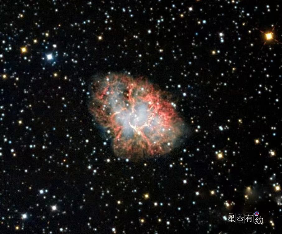 中国天文学会会员、天津市天文学会理事杨婧介绍,公元1054年,我国宋朝的司天监在“天关”附近发现并记录了一颗特别的“客星”,最亮时白天也能看到它。司天监对这颗亮星进行了持续观察,直至其慢慢消失不见,史称“天关客星”。现代天文学研究证明,这是一次超新星爆发,也是天文学中第一个被认证具有清晰历史观测记录的超新星遗迹。历经千余年,这颗超新星爆发后的物质逐渐扩散成一个星云,因外形酷似螃蟹,被称为“蟹状星云”。